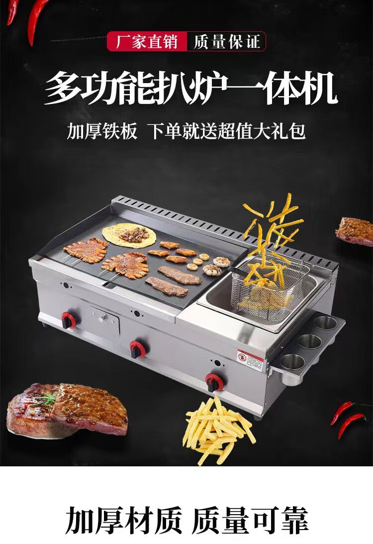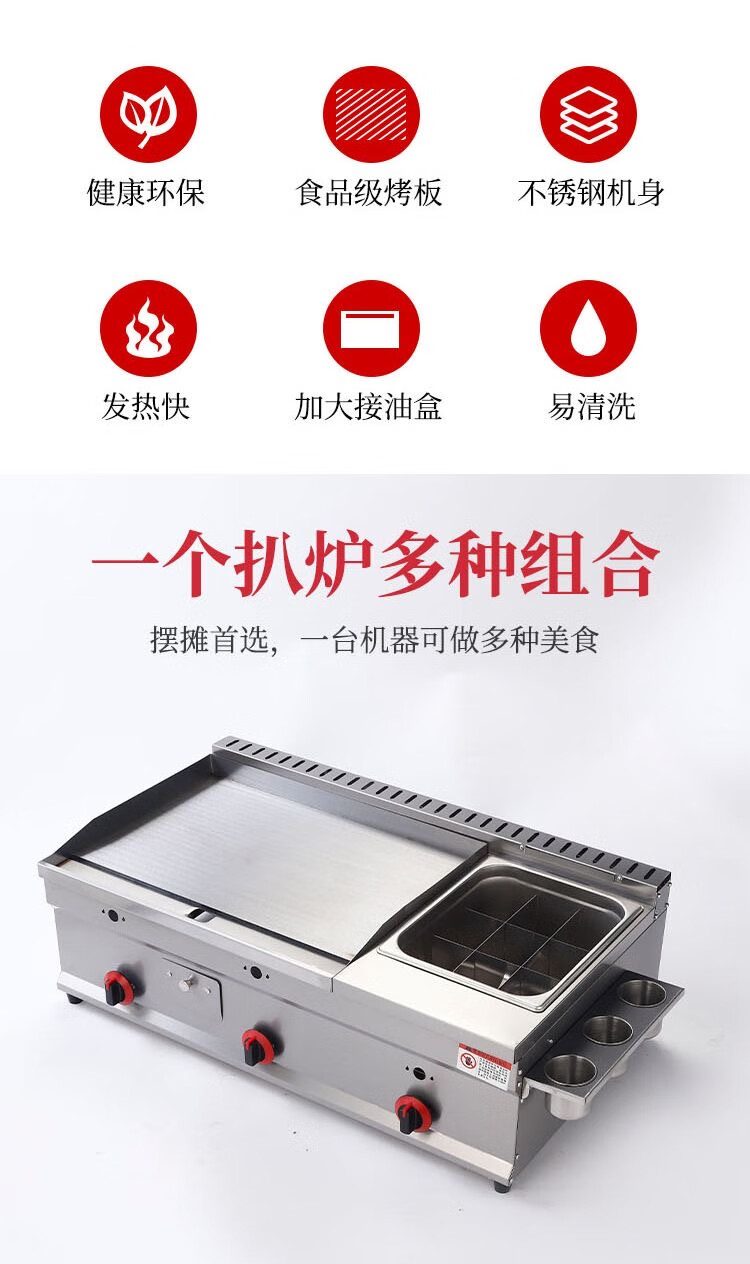 Xu'an gas griddle, electric griddle, frying pan combination machine, commercial gas hand-grilled cake, squid, teppanyaki stall, multi-functional Oden electric griddle, 40 griddle, fried sausage, gas version