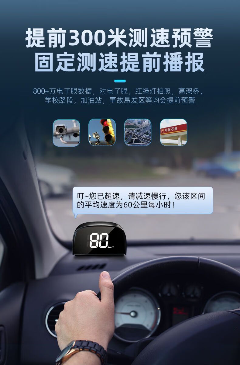 New head-up HUD speed safety warning instrument car cloud electronic dog mobile speed measurement HUD speed display version standard cigarette lighter cable