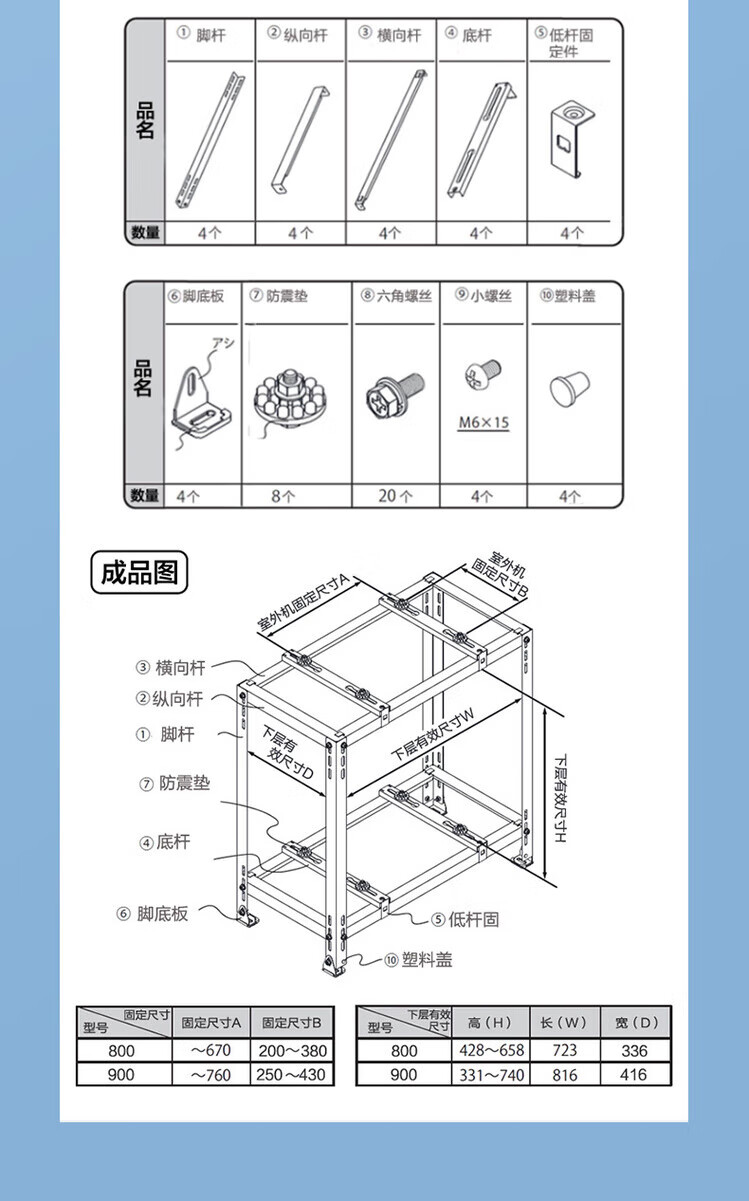 OUOETY air conditioner outdoor unit bracket accessories save space, floor-standing double-layer stacked shock-proof, shock-proof and noise reduction rack 3 XE-C1800*800*4001 hp