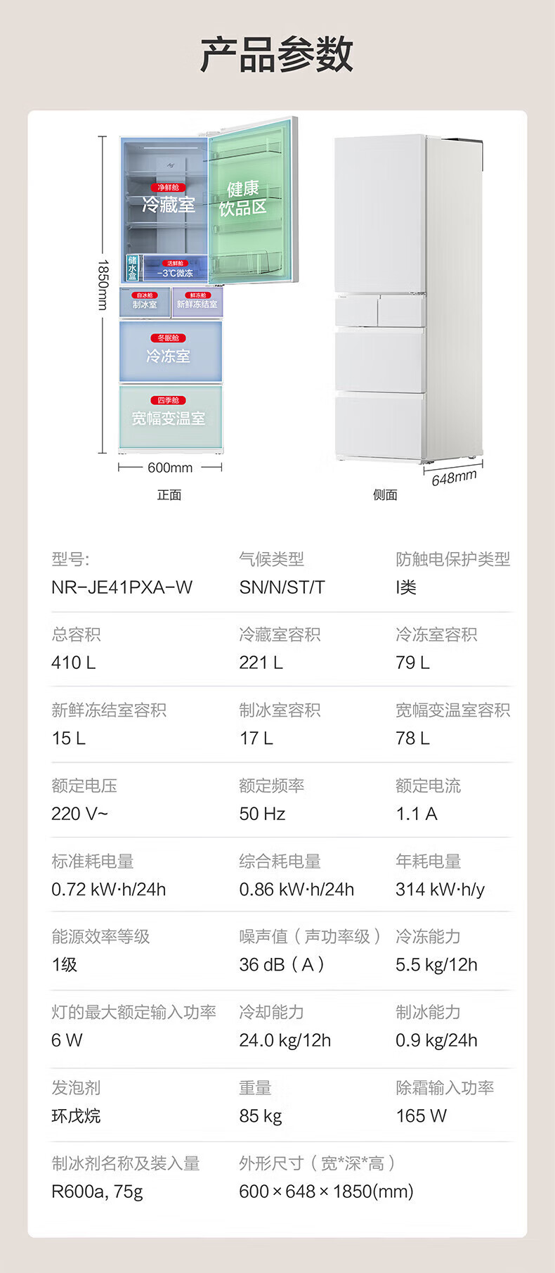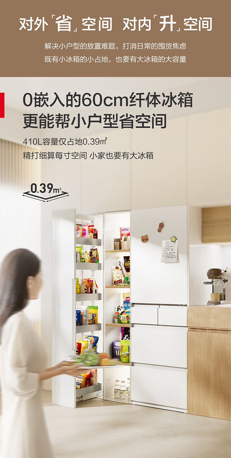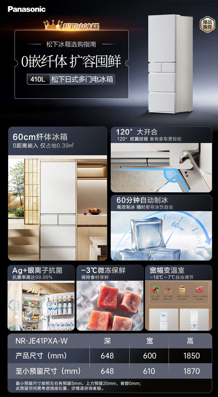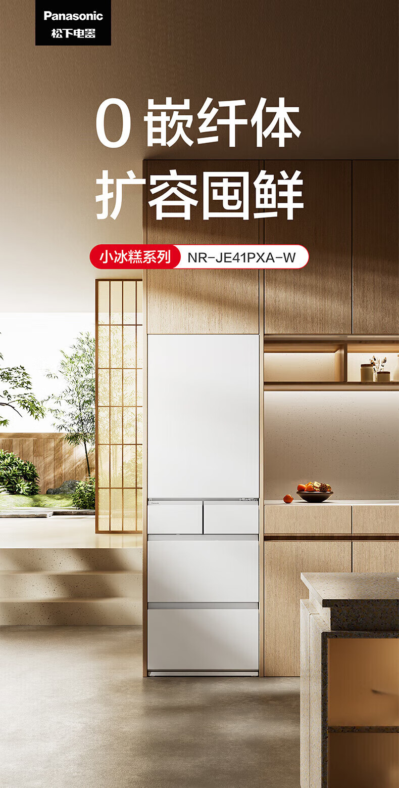 Panasonic small sorbet 410 liter Japanese multi-door refrigerator ultra-thin zero-embedded household refrigerator variable frequency air-cooled frost-free antibacterial and odor-free automatic ice making NR-JE41PXA-W
