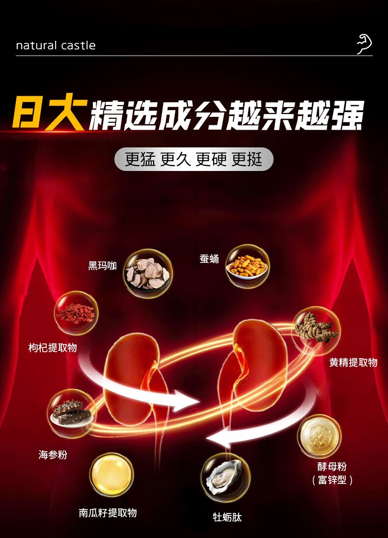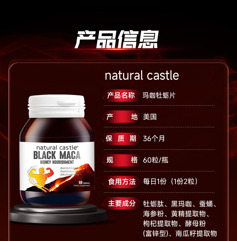Natural Castle Oyster Arginine Maca Tablets Tonify Kidneys, Strengthen Vitality, Delayed Enlargement and Thickness, Support Erection, Long-lasting Hardening, Impotence and Premature Ejaculation, 9 Bottles, Increase Thickness and Enlargement, Save 2127 Yuan, 60 capsules*9 bottles