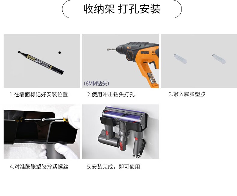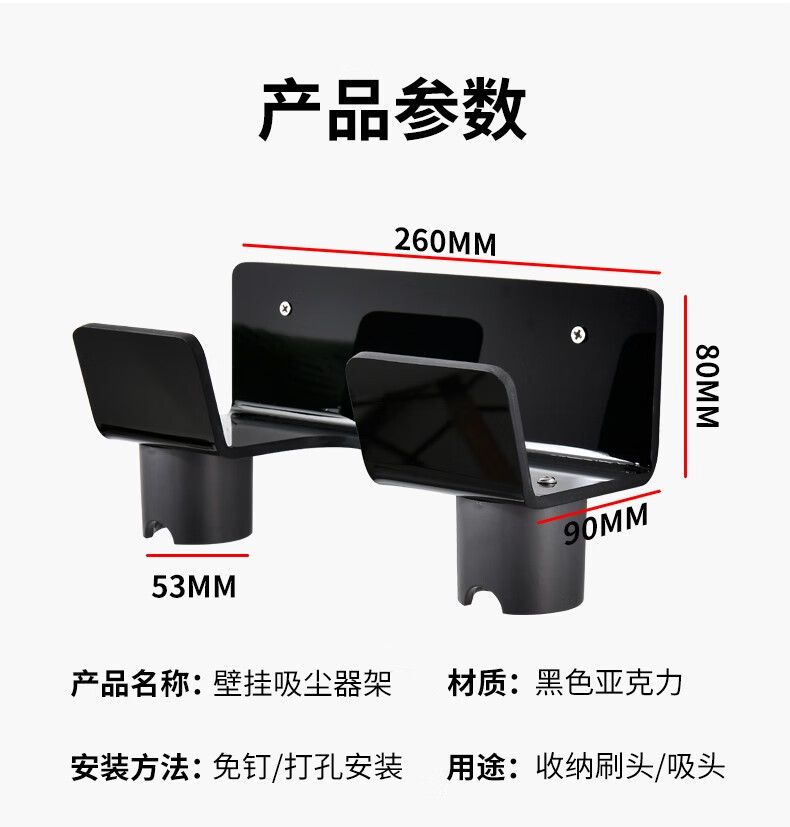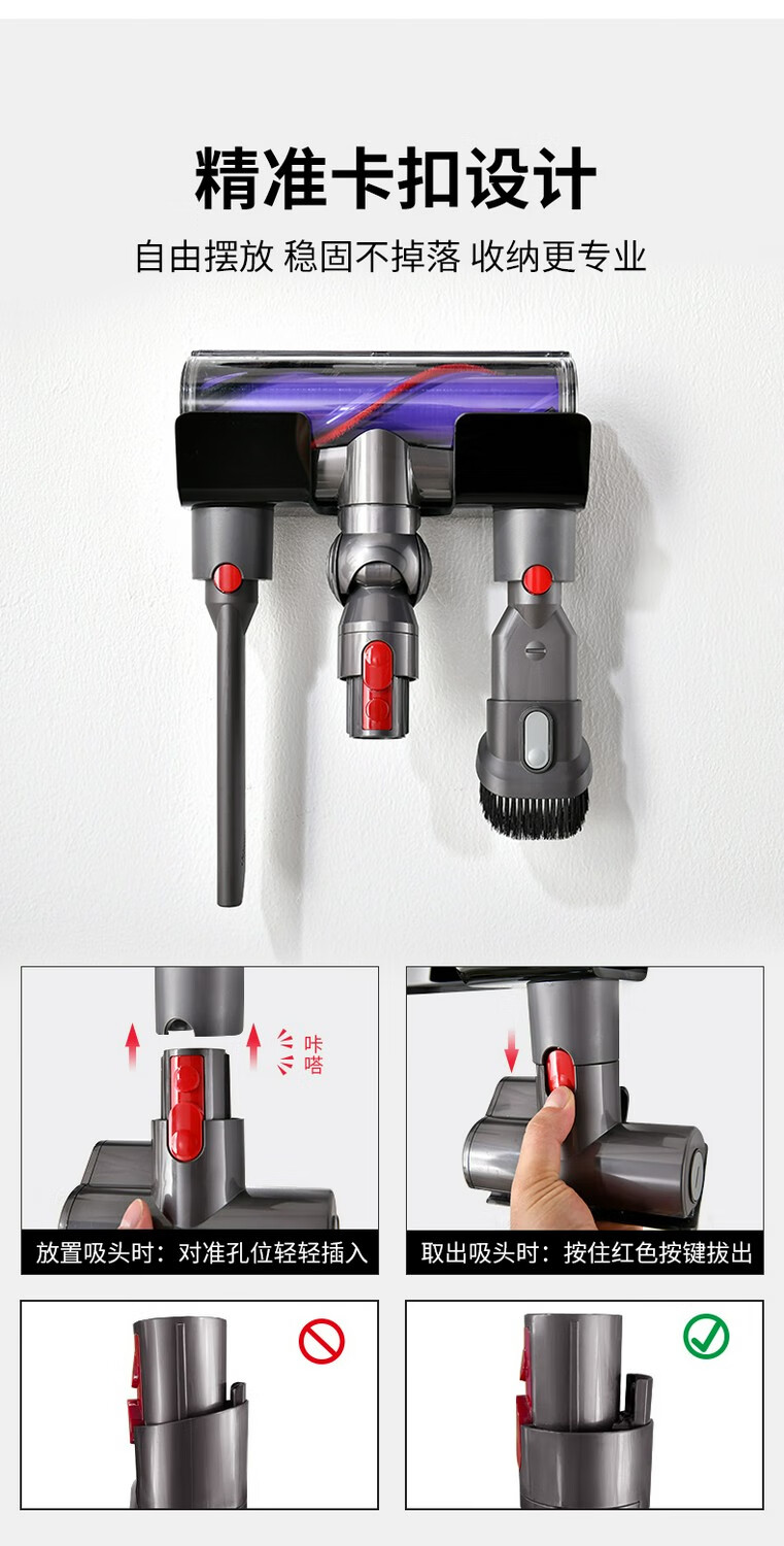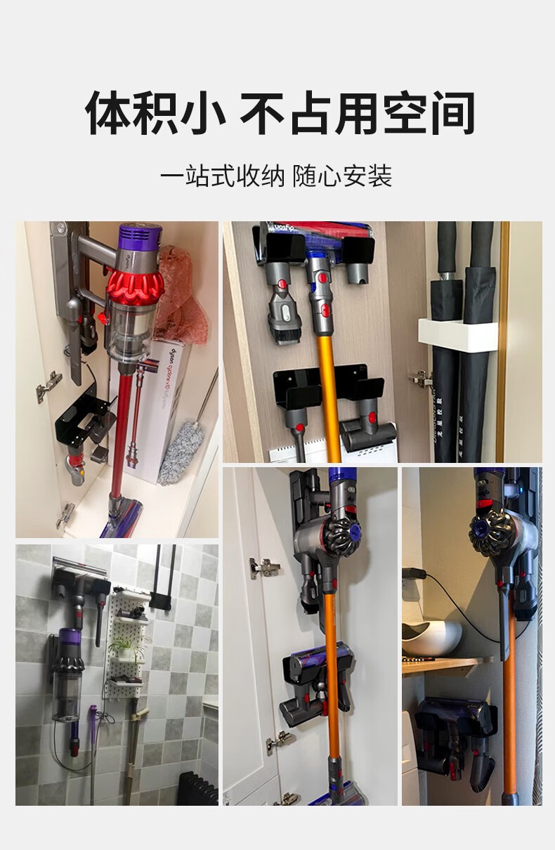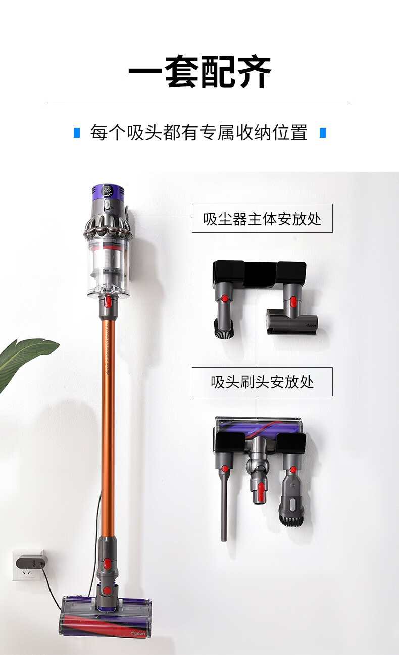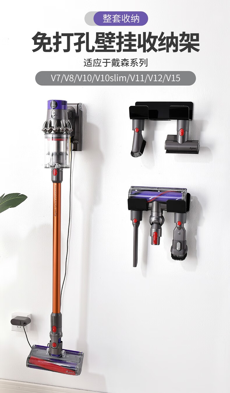 Fansien Dyson vacuum cleaner bracket adapts to V7V8V10V11V12V15 suction head shelf wall-mounted charging storage rack single shelf + steel plate nail-free 0cm