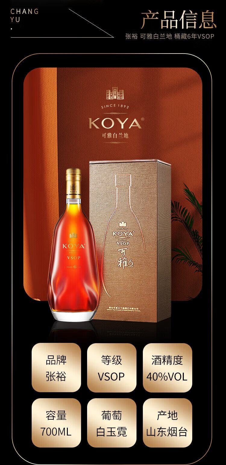 Changyu Keya 6-year brandy 700mL barreled for 6 years VSOP high-end foreign wine gift box for self-drinking and gift giving New Year's Day full box 700mL 4 boxes