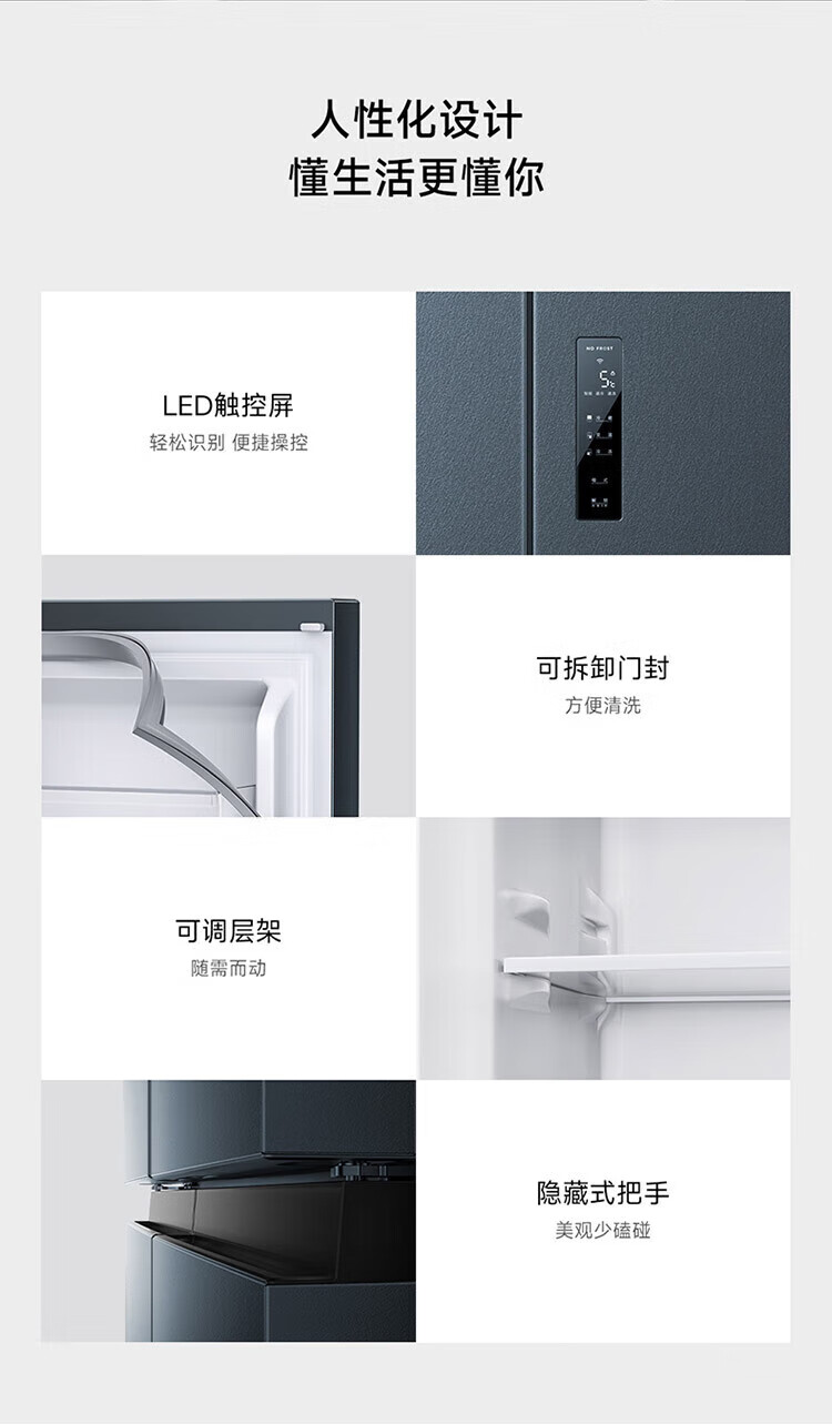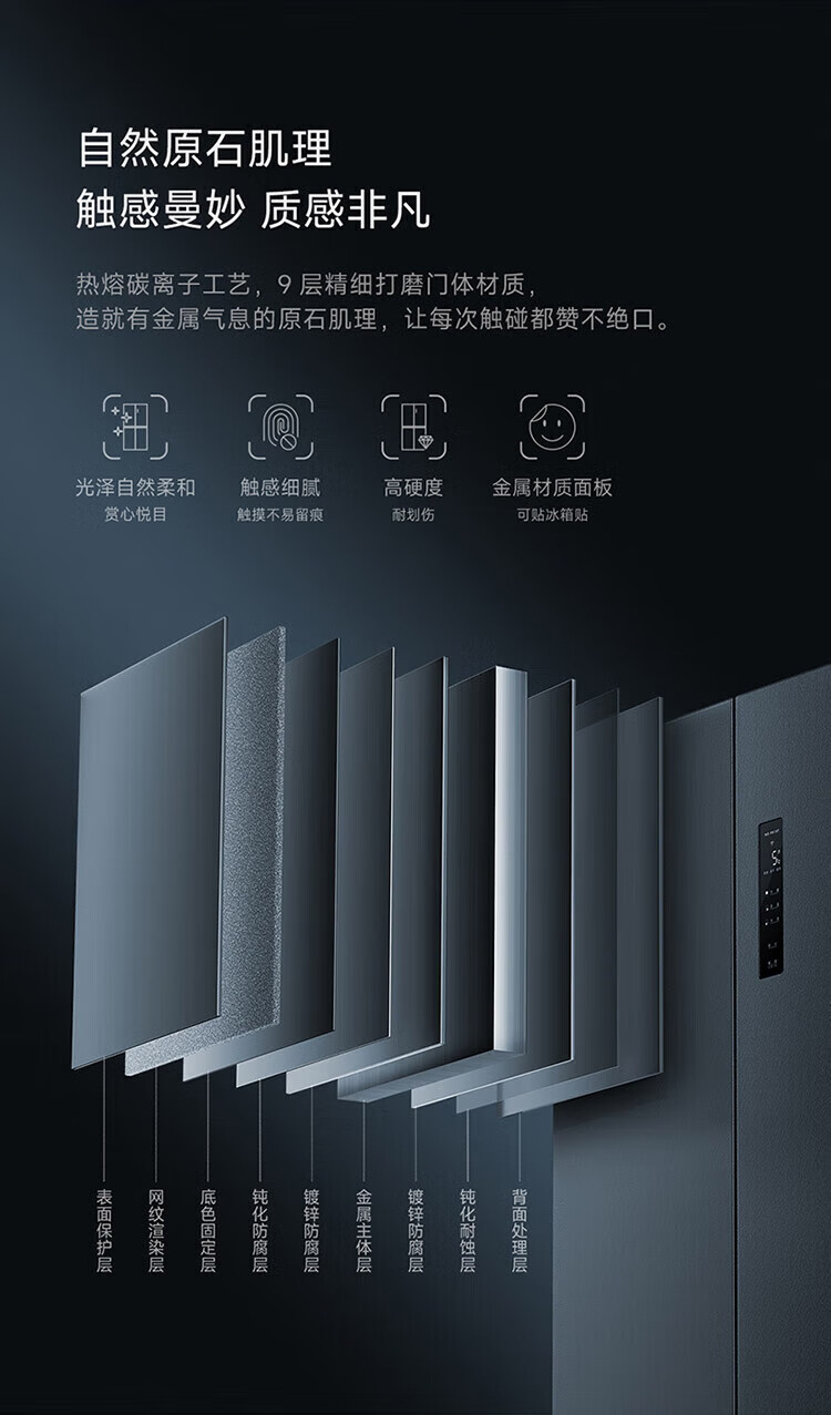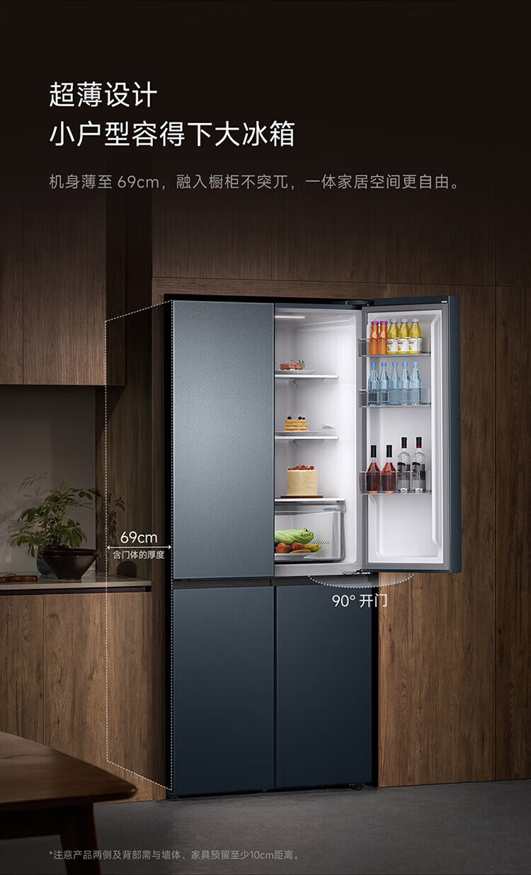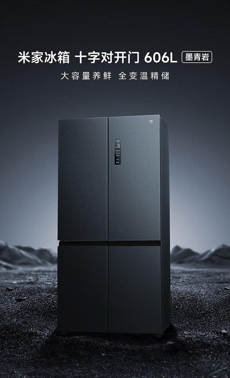 Mijia (MIJIA) Xiaomi Refrigerator 606L Cross-Hand-Door One-Level Frequency Converter Large Capacity Thin Embedded Ink Bluestone Panel Air-cooled Frost-free and Sterilized BCD-606WMFSA Mijia Refrigerator Cross-Hand-Door 606L Black Ink Yuyan