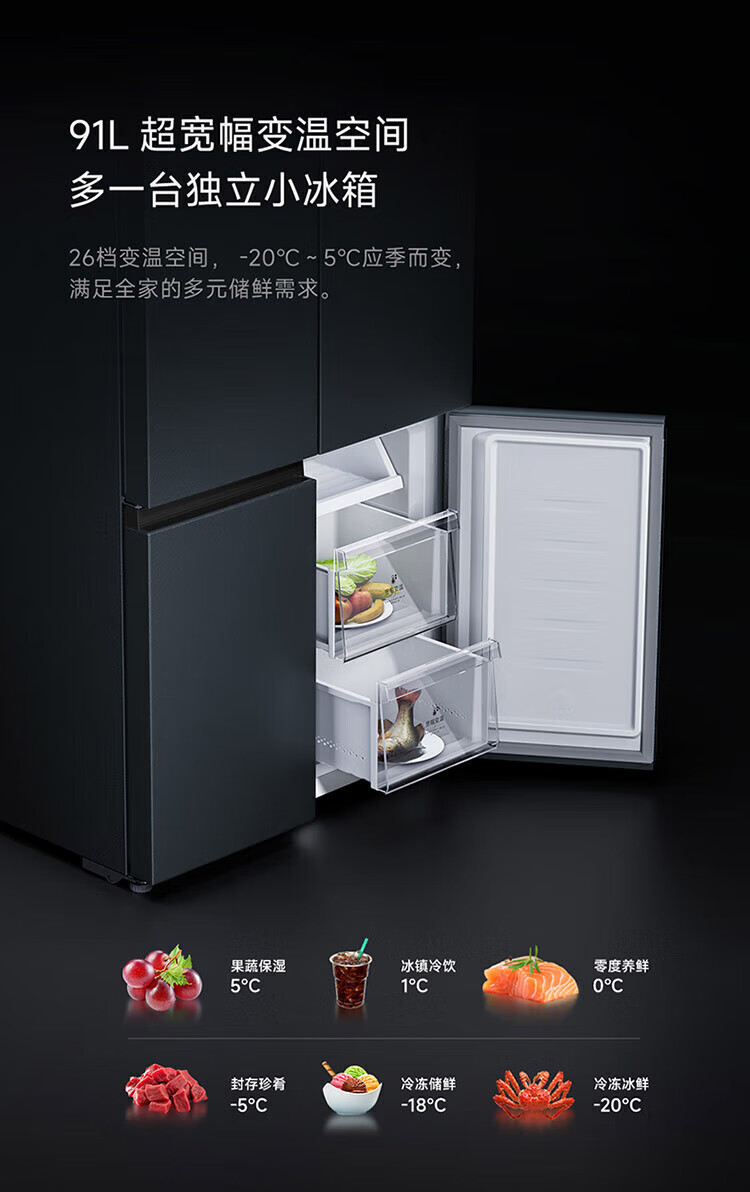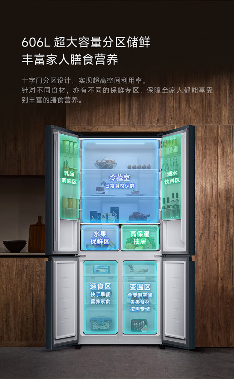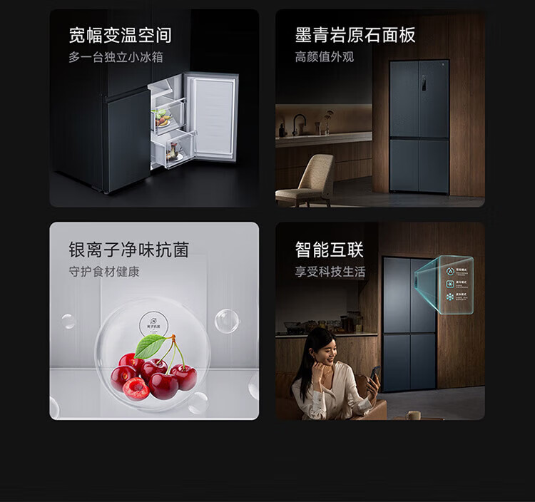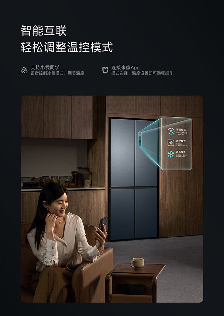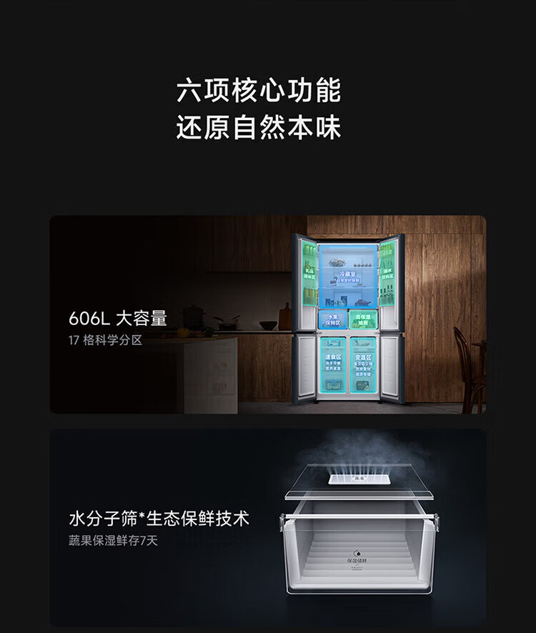 Mijia (MIJIA) Xiaomi Refrigerator 606L Cross-Hand-Door One-Level Frequency Converter Large Capacity Thin Embedded Ink Bluestone Panel Air-cooled Frost-free and Sterilized BCD-606WMFSA Mijia Refrigerator Cross-Hand-Door 606L Black Ink Yuyan
