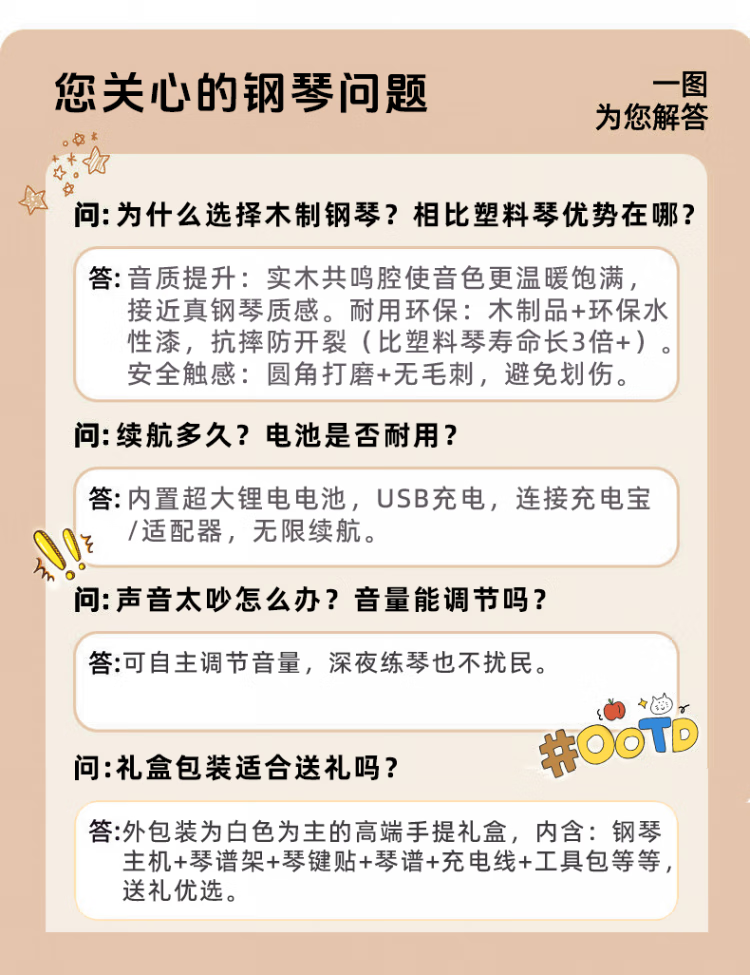 Bei Chuzhong children's piano toy electronic keyboard for boys and girls 1-3-6 years old early education puzzle one-year-old baby's first birthday gift walnut color upgraded control panel + Bluetooth + music stand charging gift box version 2-4-5-8 years old boys and girls ten practical wooden small piano New Year's Day gift