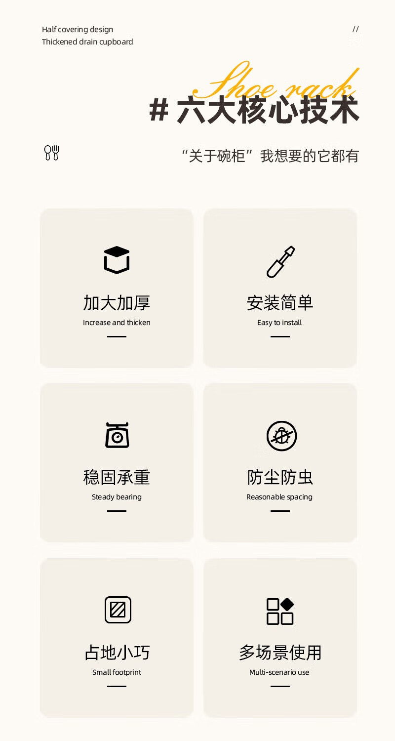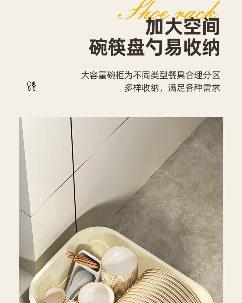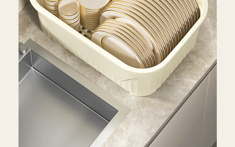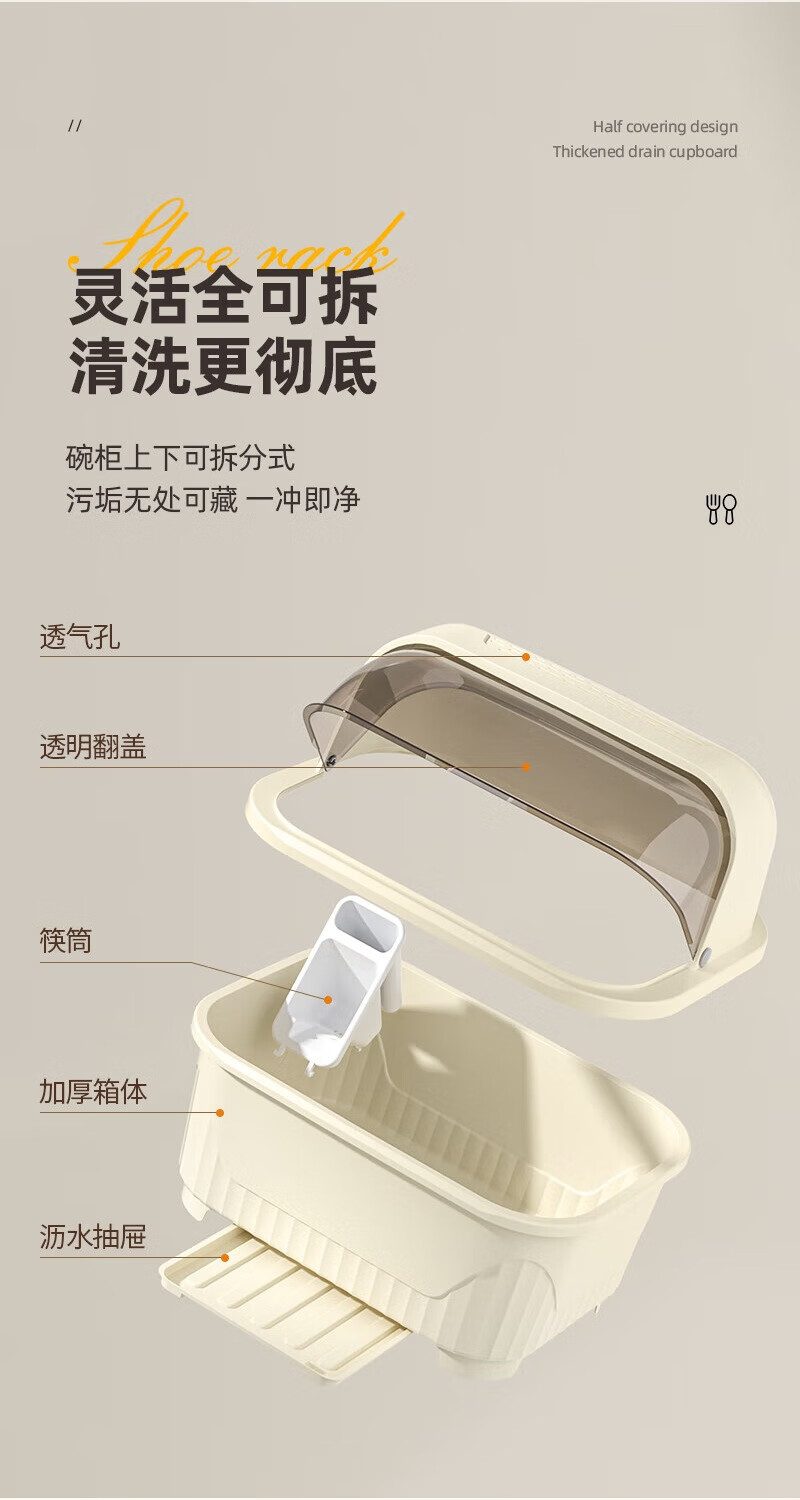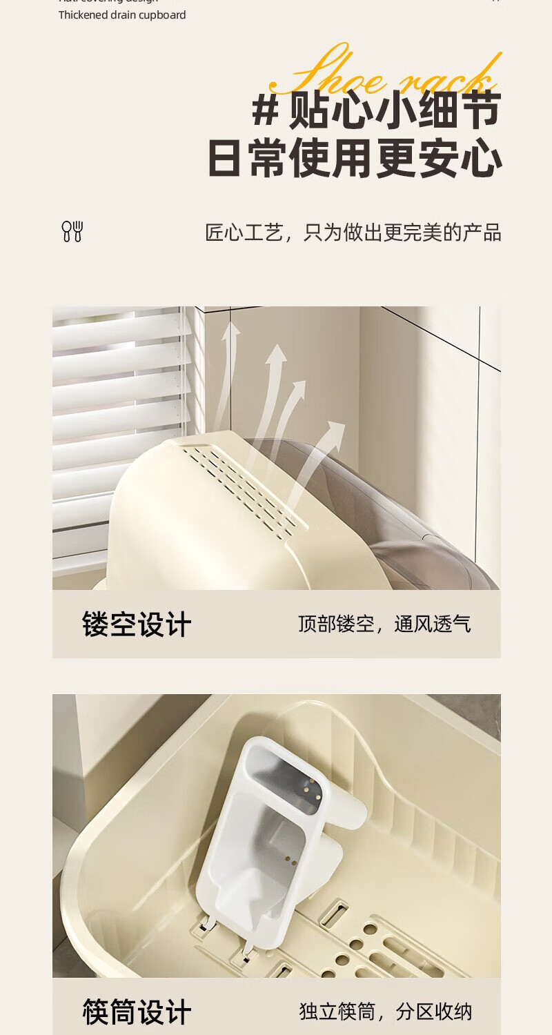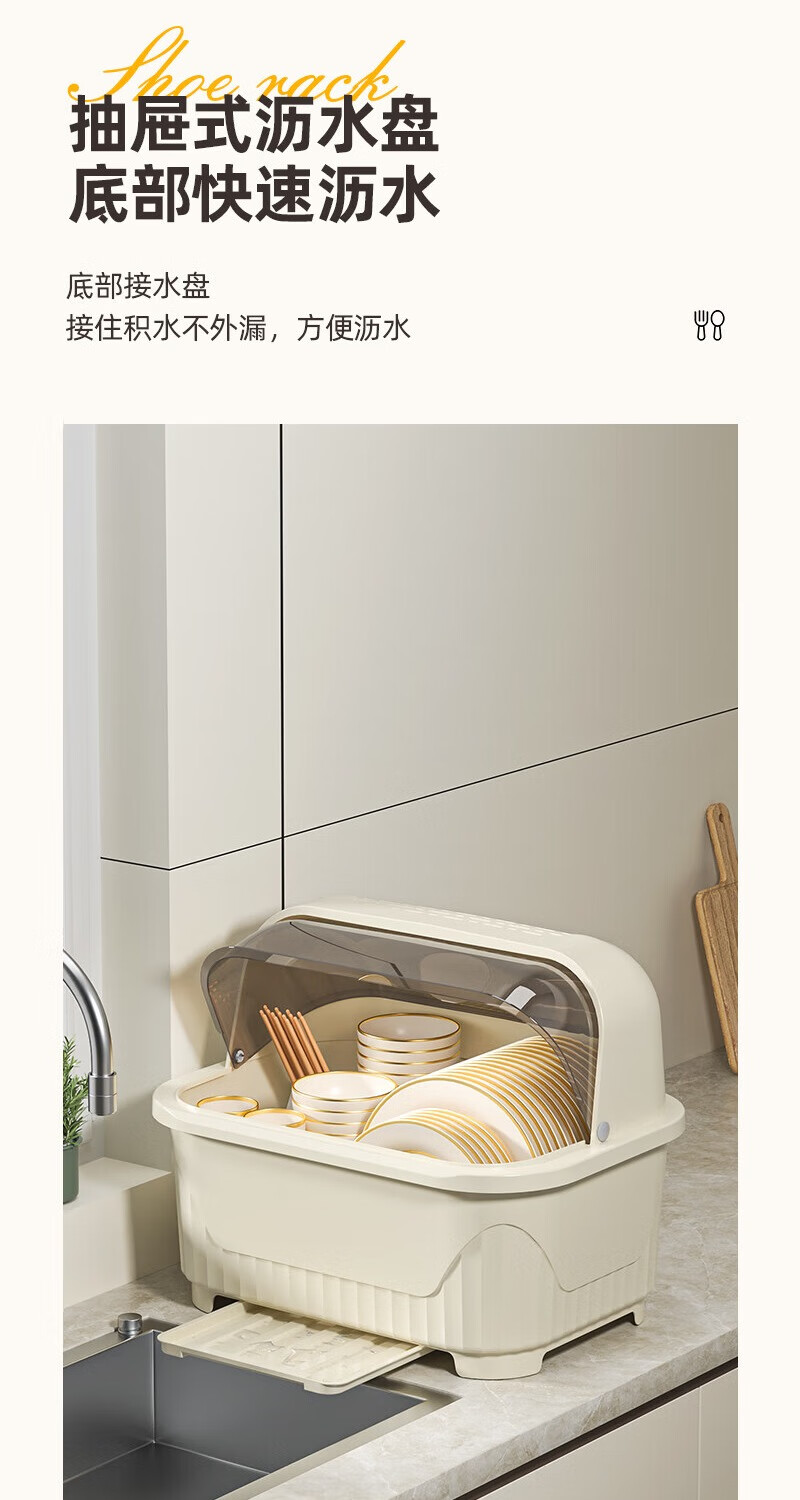JD Logistics Kitchen Plastic Cupboard Home Plate and Dishes Storage Box Tableware Rack Drain Bowl Rack Large Cream Cupboard 39*28.5*31cm