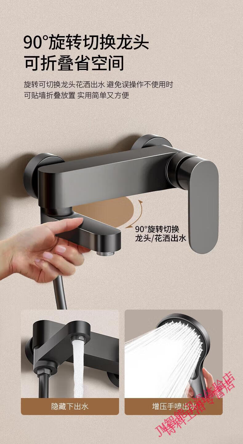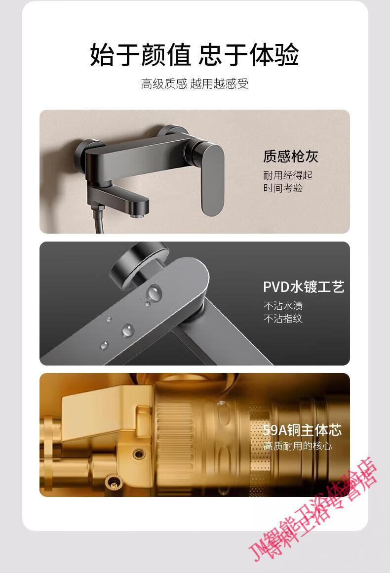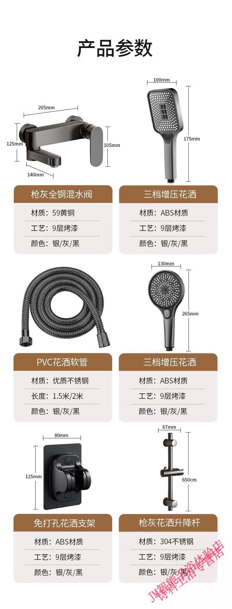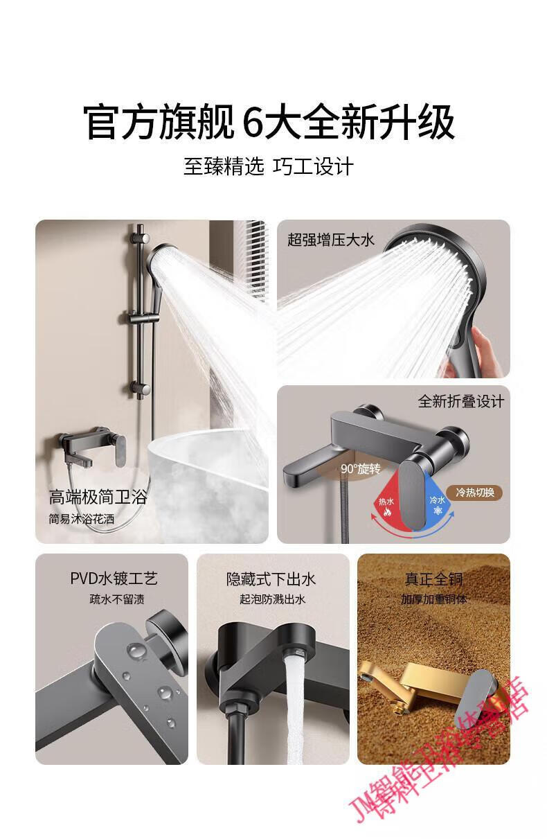 Hengjie (HEGII) household all-copper shower set faucet bathroom toilet hot and cold bath shower triple mixing valve gun gray lifting style fine copper faucet + square flower