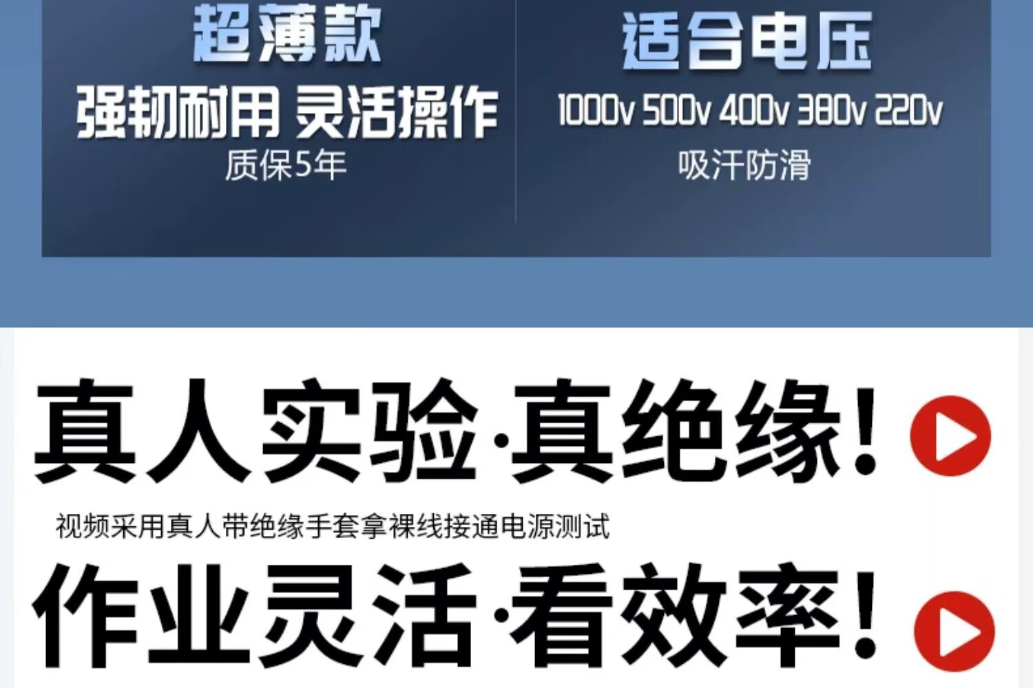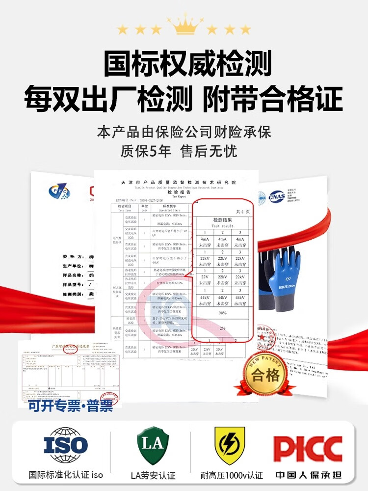 Insulated gloves for electricians 380v high voltage 10kv 35kv anti-electricity low voltage thin rubber 400v new energy 220v 400v electrician anti-electricity double-sided insulation fully dipped rubber 5 pairs