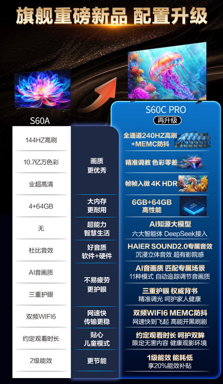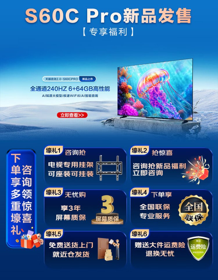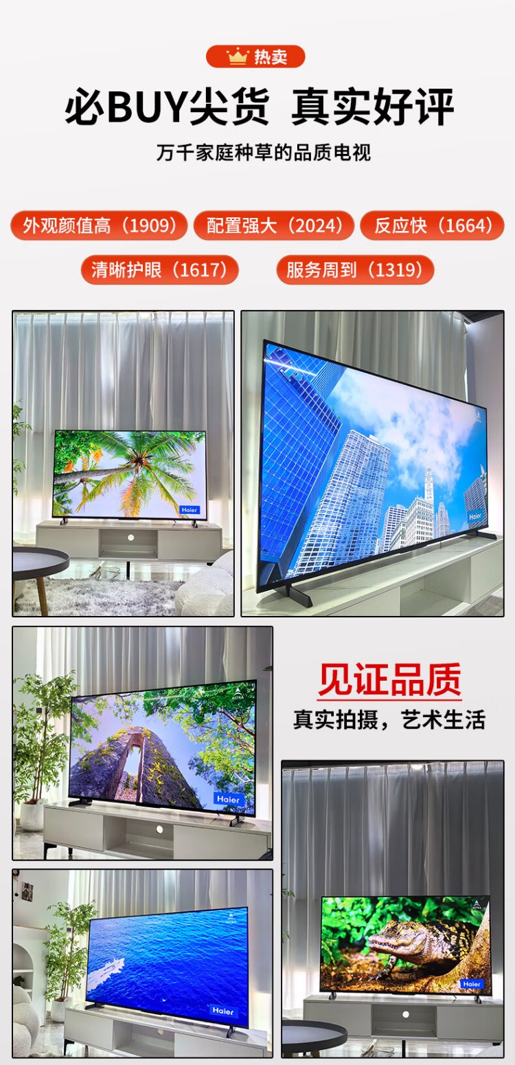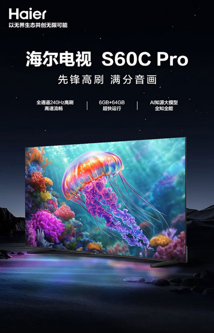 Haier TV new product S60C full channel 240HZ high brush 6+64G large memory dual-band WiFi6 AI smart screen color TV LCD 4K eye protection ultra-thin gaming TV 75 inches new 240HZ high brush 6+64G triple eye protection Consult and receive surprises