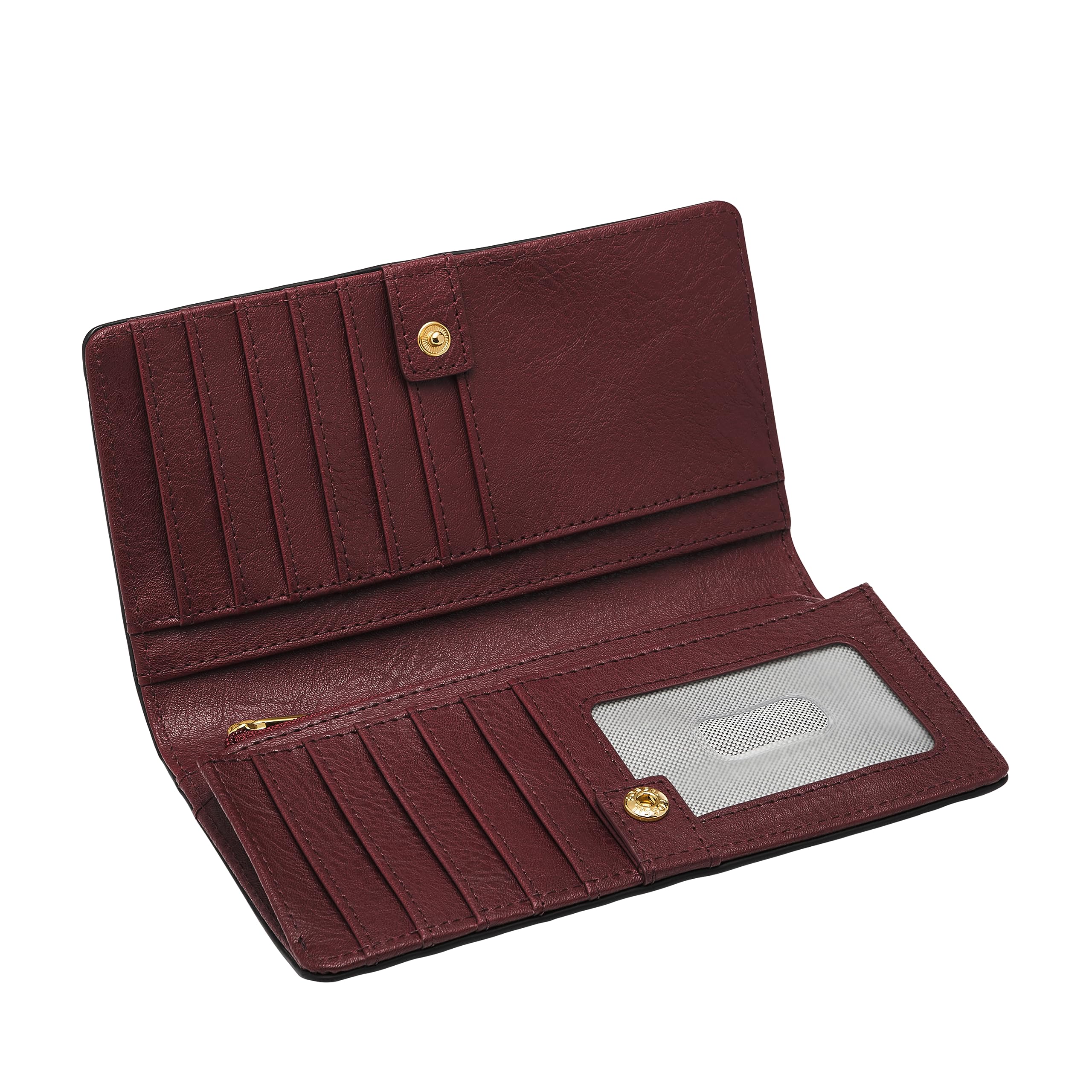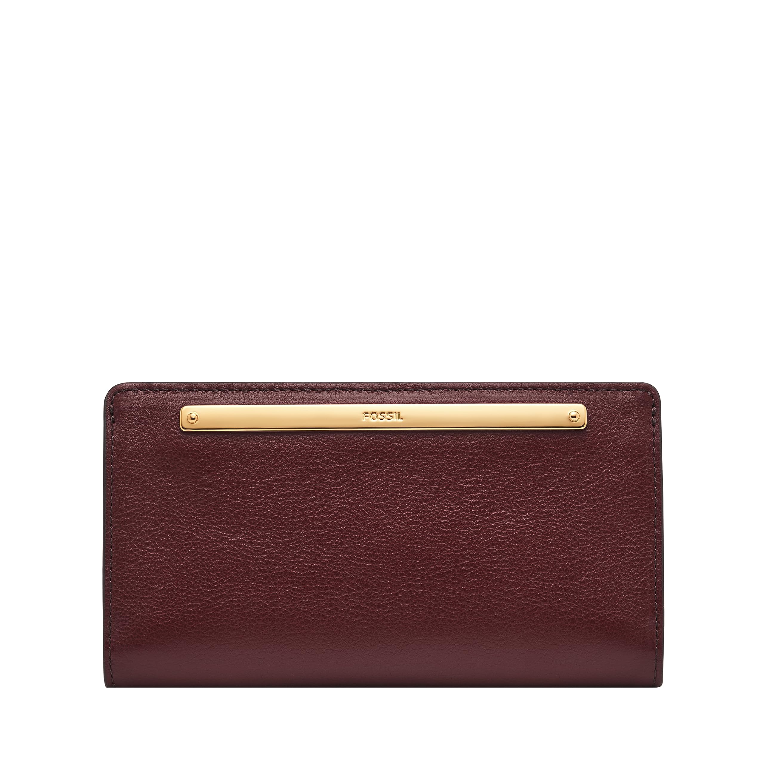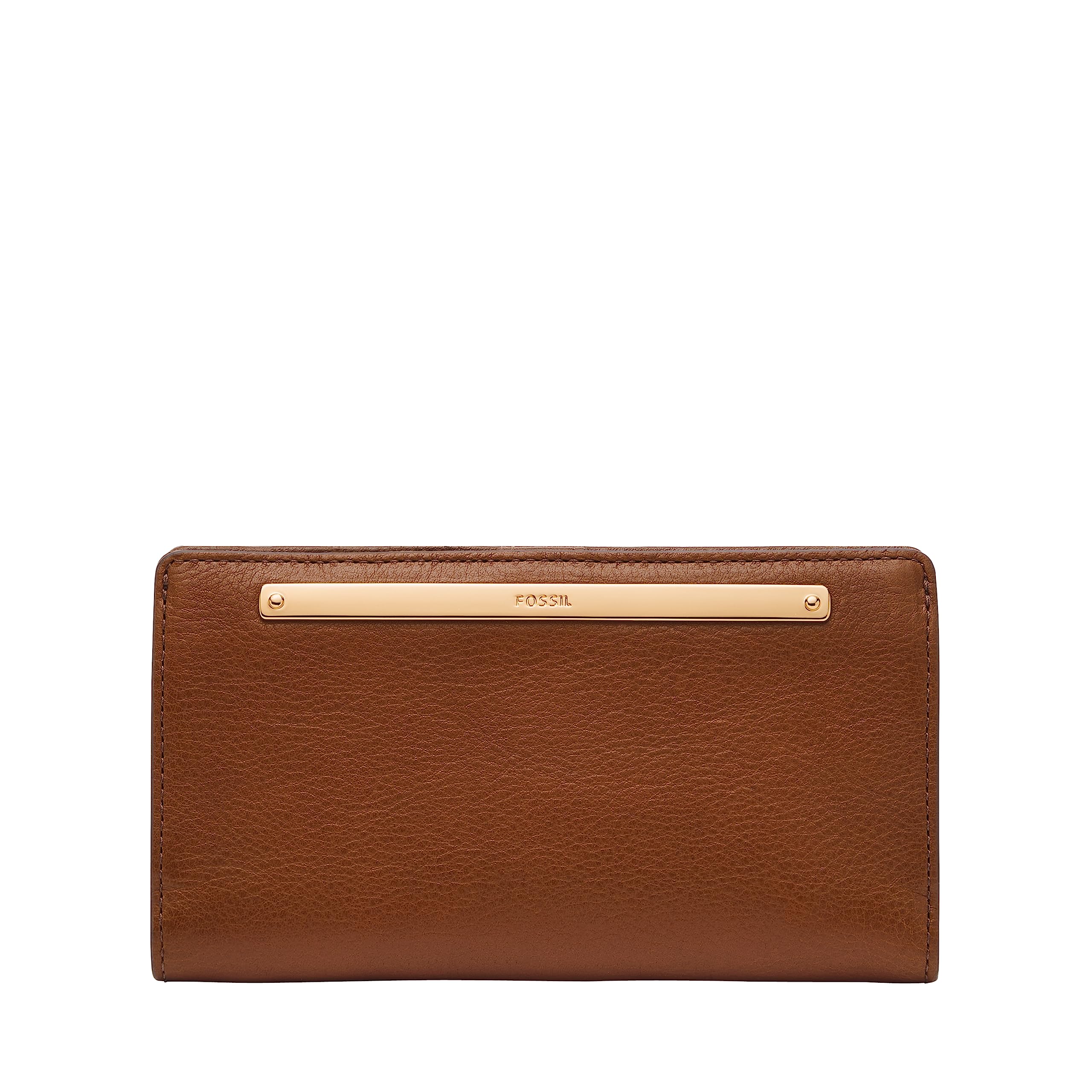 Fossil Women's Bifold Leather Wallet Fashionable Simple Luxury Wallet Classic Style Birthday Gift Brown W/ Gold One Size