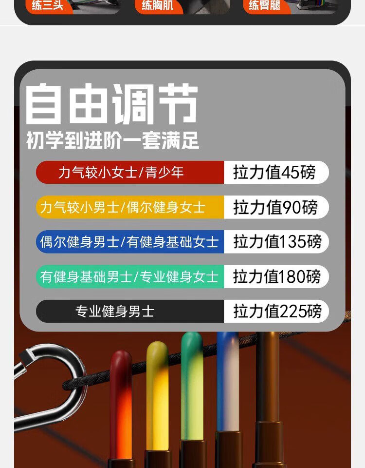OUZEY tension rope elastic rope exercise door fitness equipment sports multi-functional elastic band to train back and chest muscles to open shoulders for men 14-piece set adjustable tension rope - 225 pounds thickened to prevent breakage + contact customer service to receive training tutorials