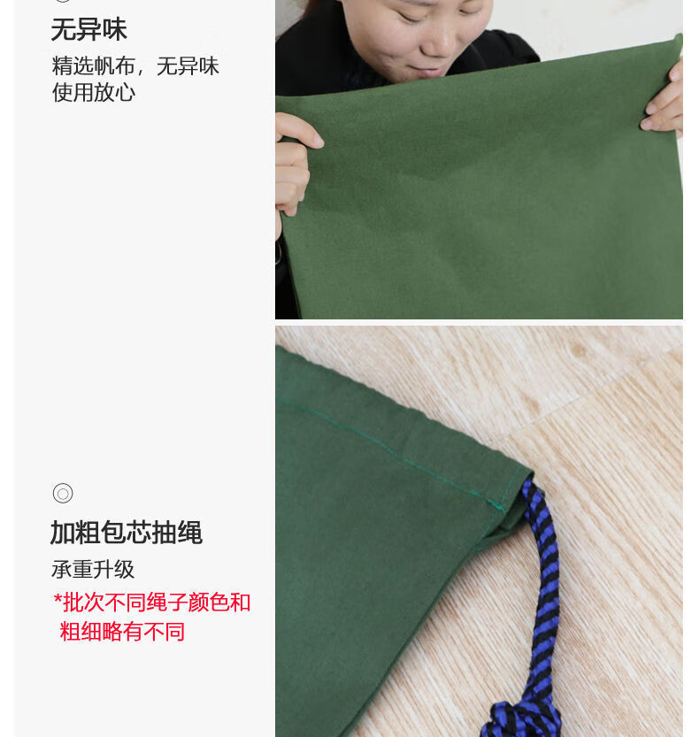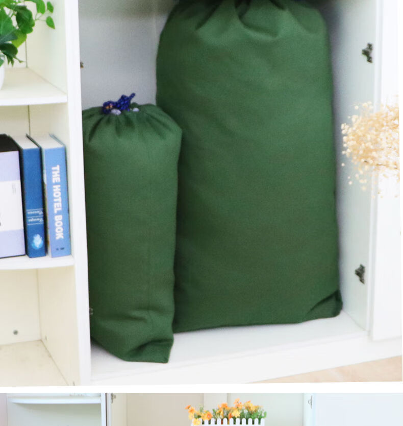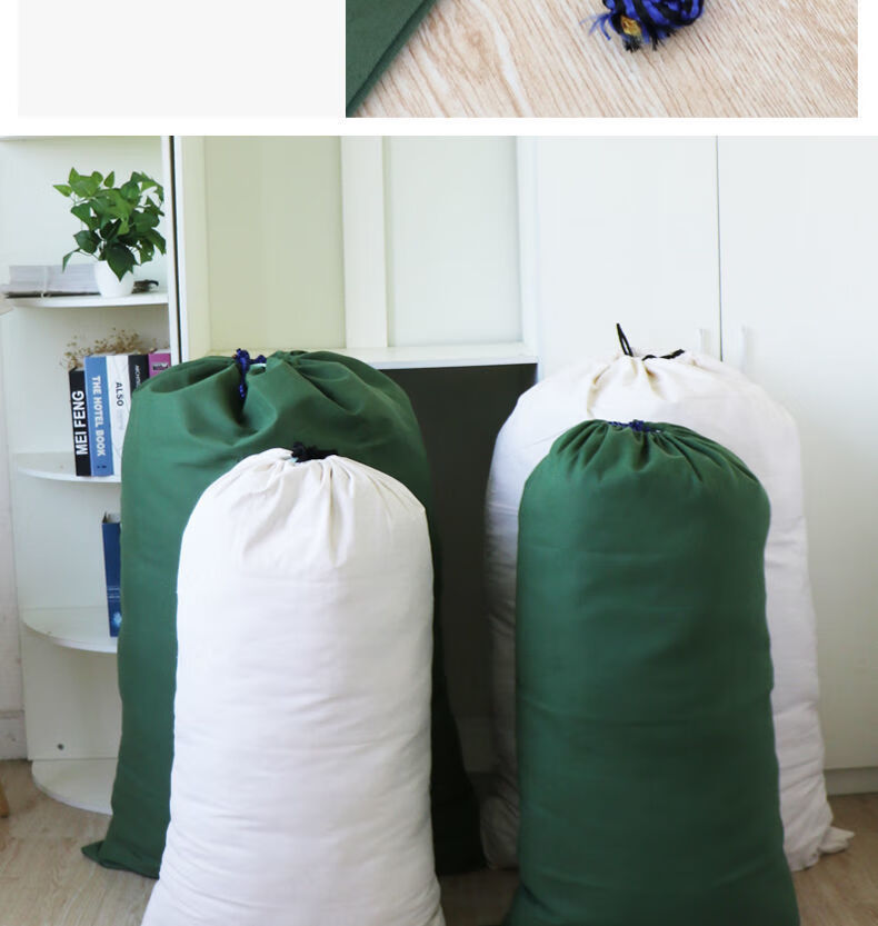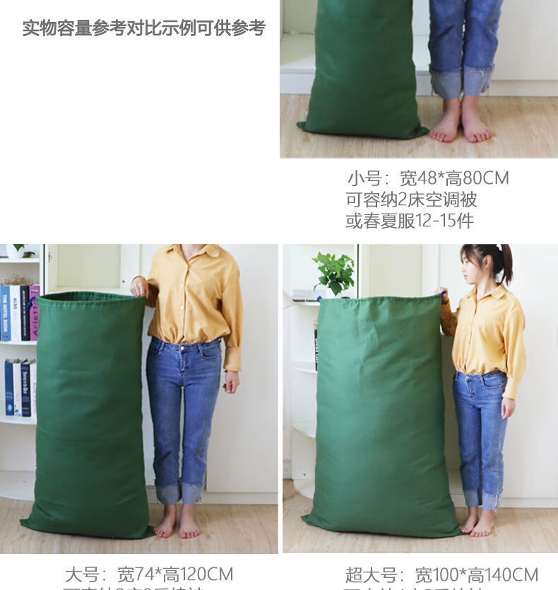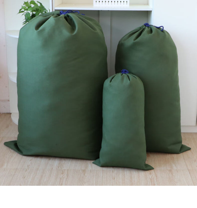 Vinoa thickened storage canvas bag, drawstring bag, transfer economical packing bag, large capacity quilt bag, canvas storage bag, military green small size 48*80cm