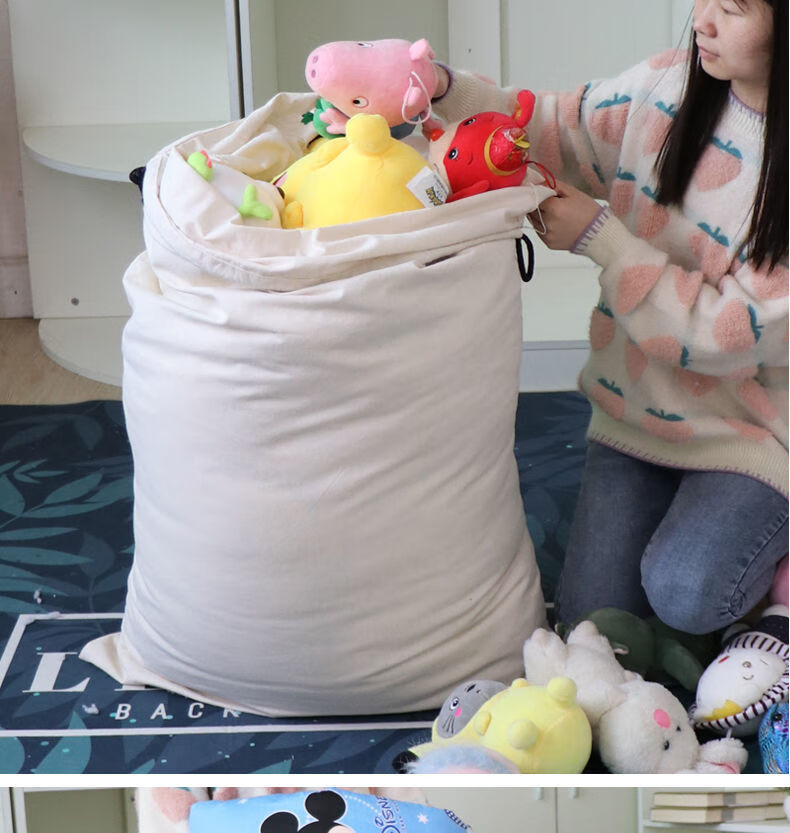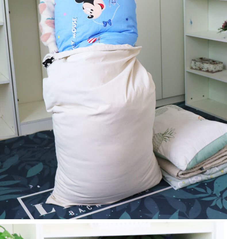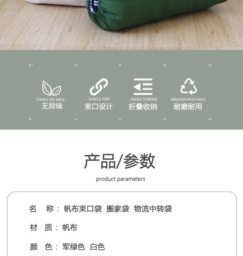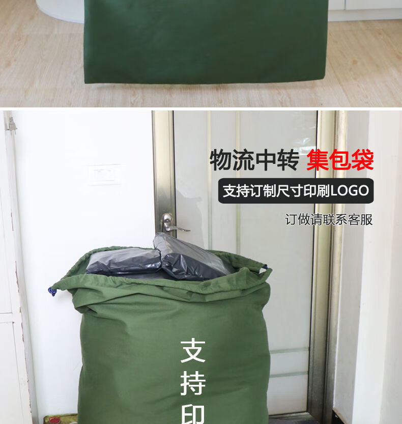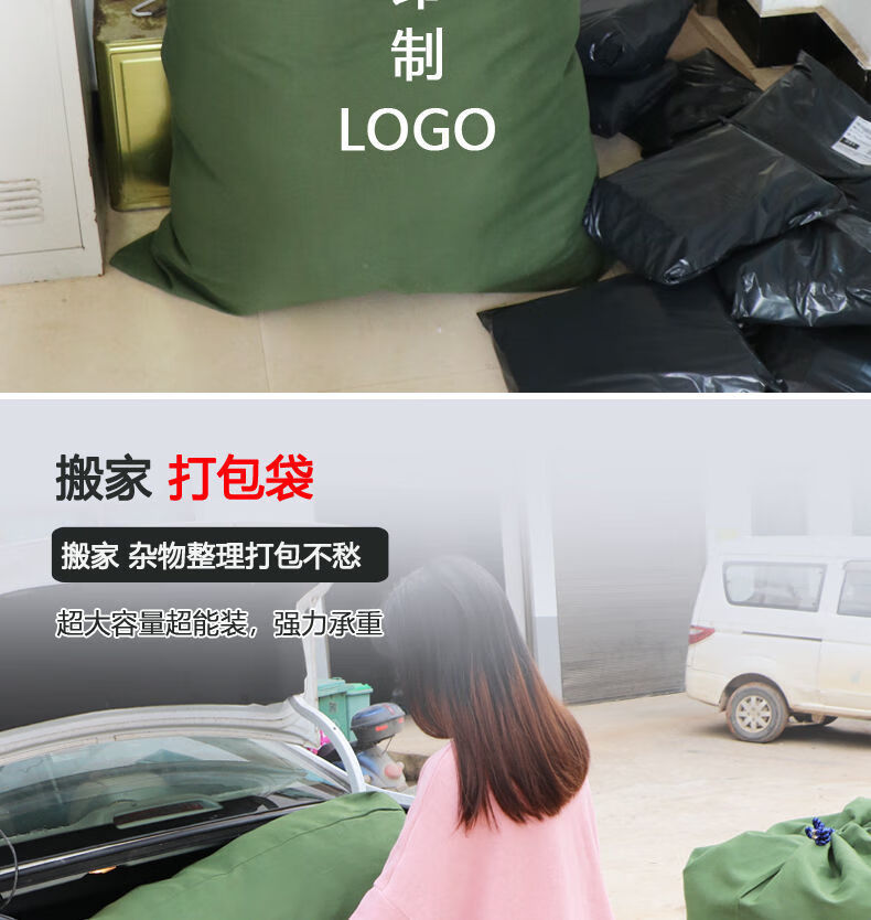 Vinoa thickened storage canvas bag, drawstring bag, transfer economical packing bag, large capacity quilt bag, canvas storage bag, military green small size 48*80cm