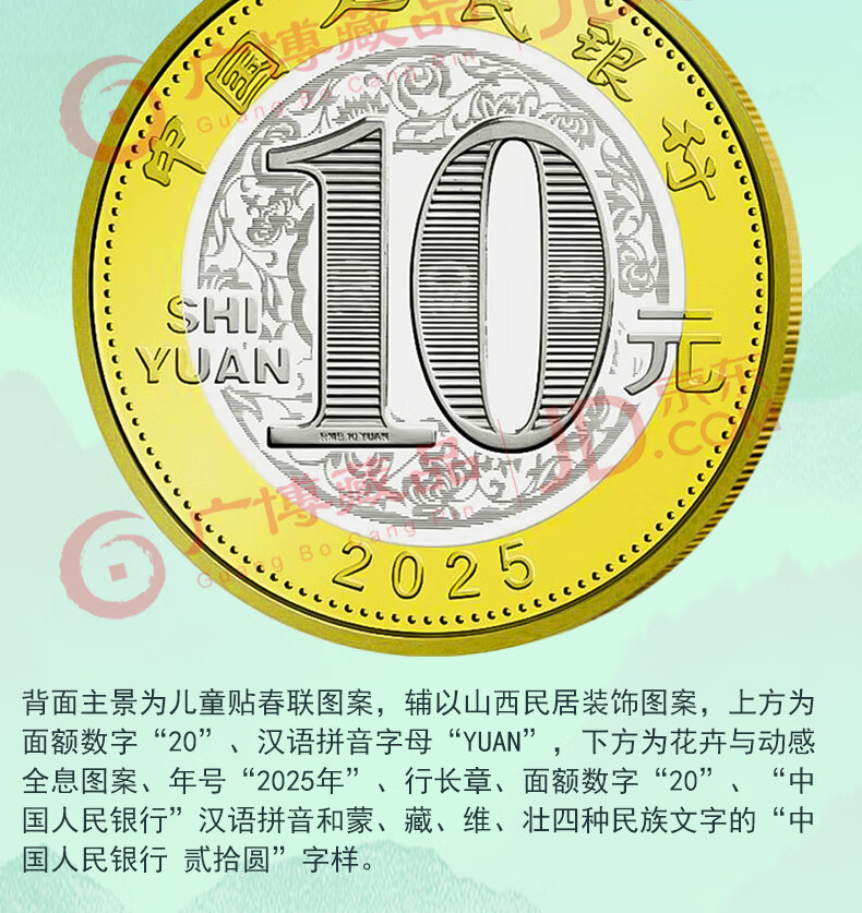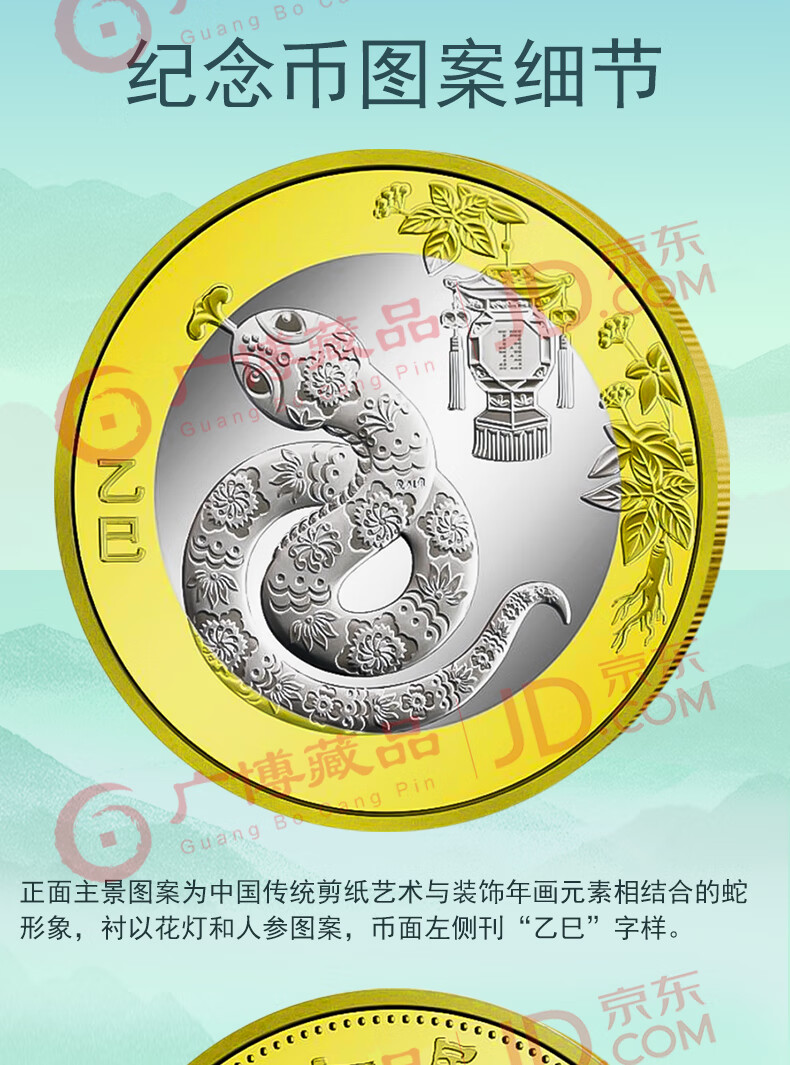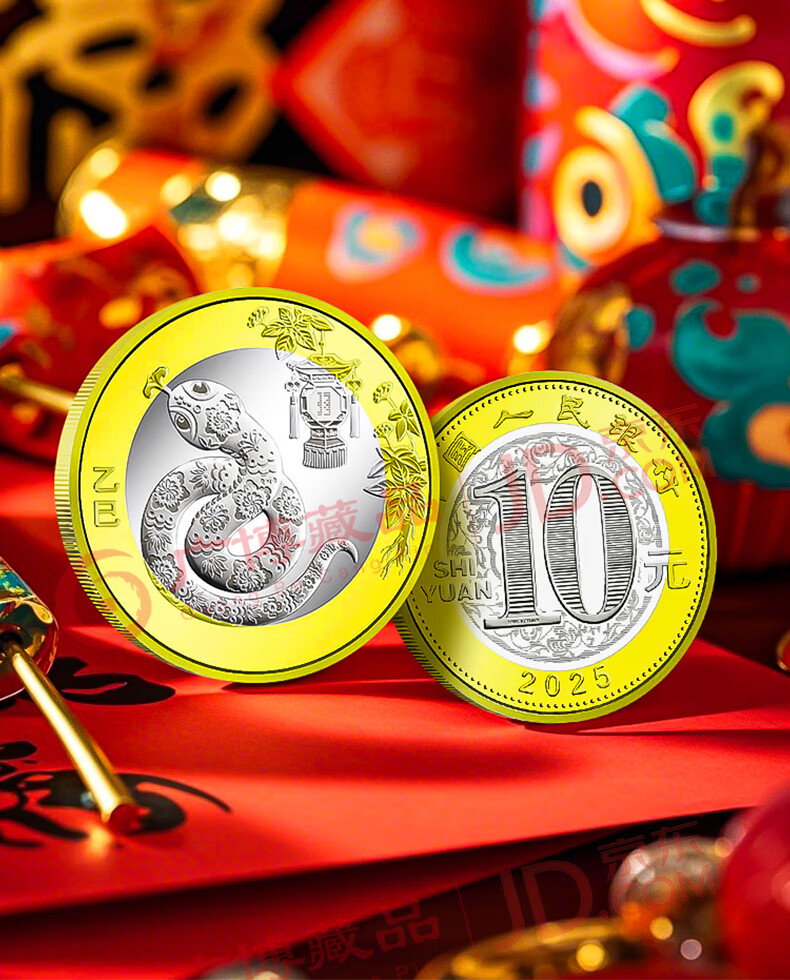 2025 Year of the Snake commemorative coins, two-wheel zodiac New Year coins, 10 yuan face value circulating coins, zodiac signs for the Year of the Snake, 1 banknote, 1 coin, 2 stamps, transparent gift box