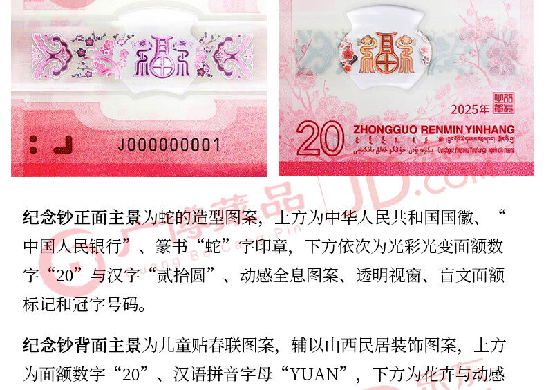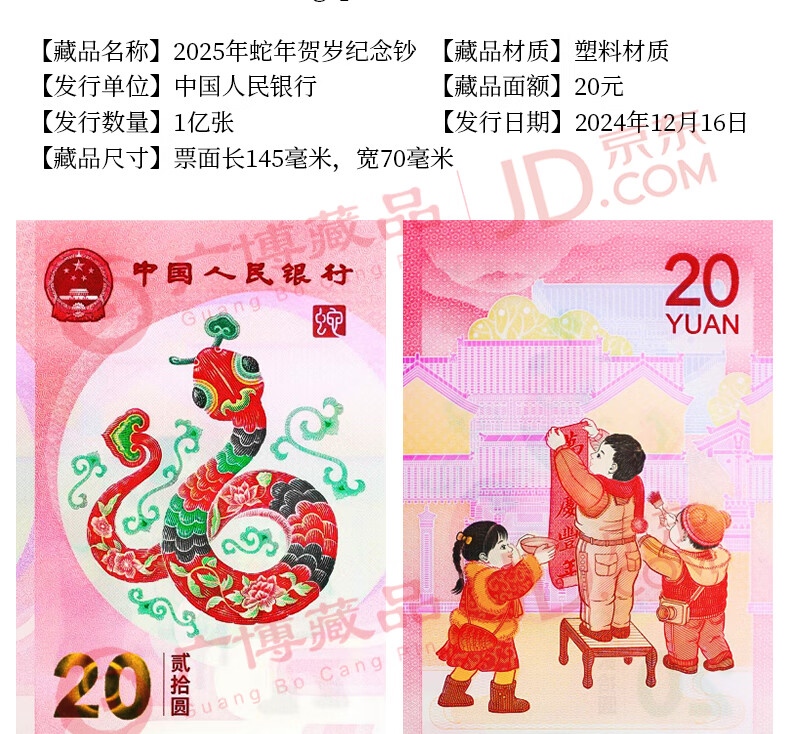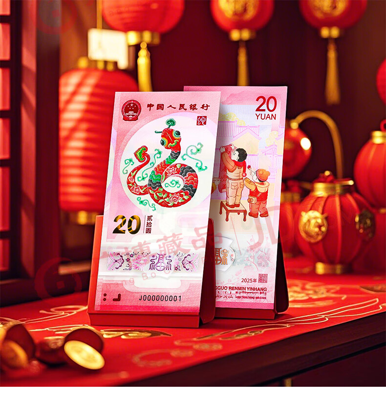 2025 Year of the Snake Commemorative Banknotes Twelve Zodiac Snake Banknotes 20 Yuan Face Value Plastic Banknote New Year Coins Coins Year of the Snake Zodiac 1 Banknote 1 Coin 2 Stamps Transparent Box