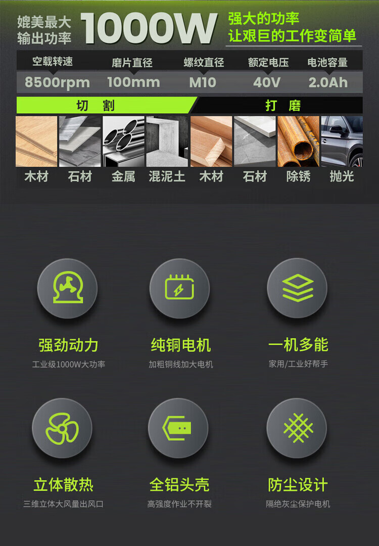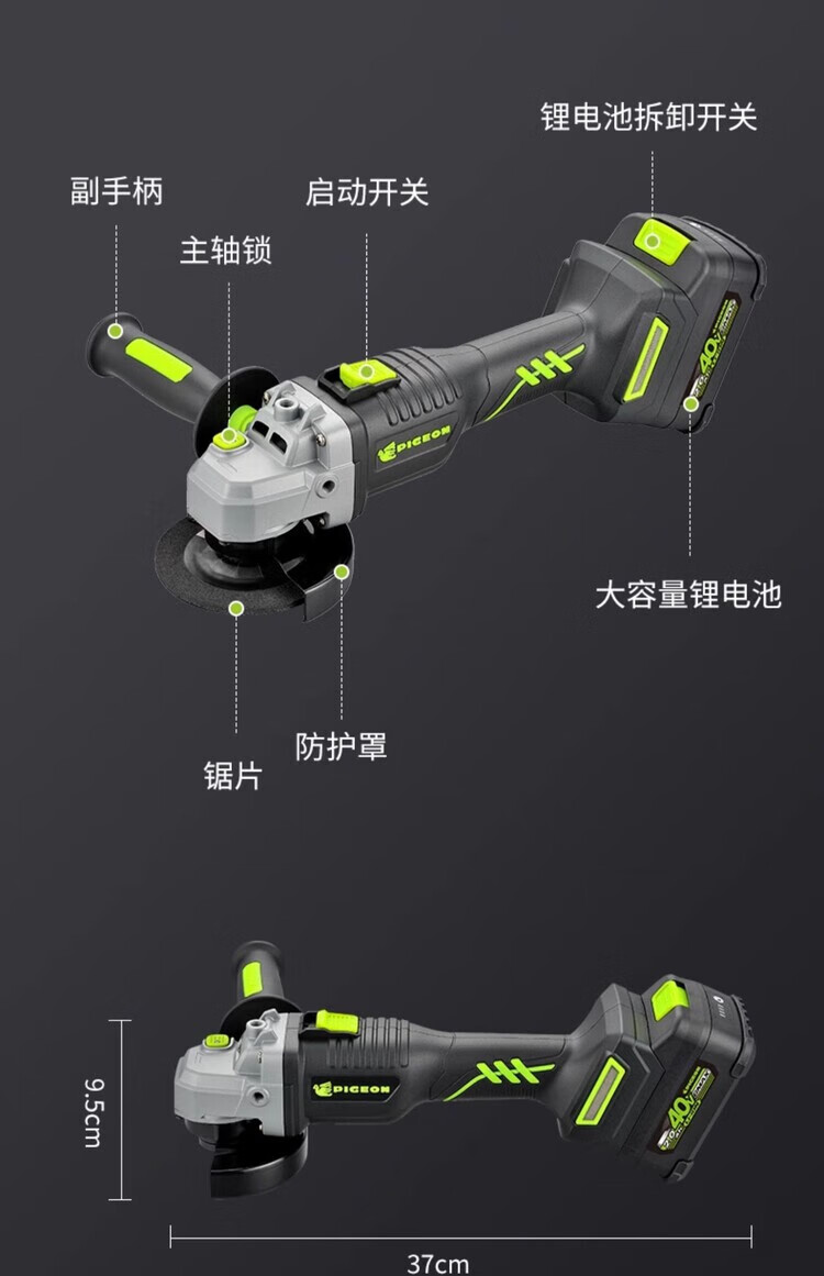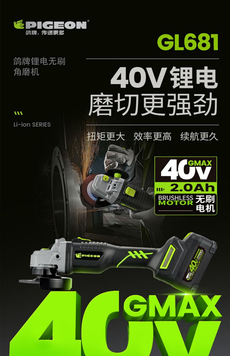 PIGEON 40V brushless rechargeable angle grinder multi-functional high-power cutting and polishing lithium electric polisher GL681 1 battery 1 charge ordinary package