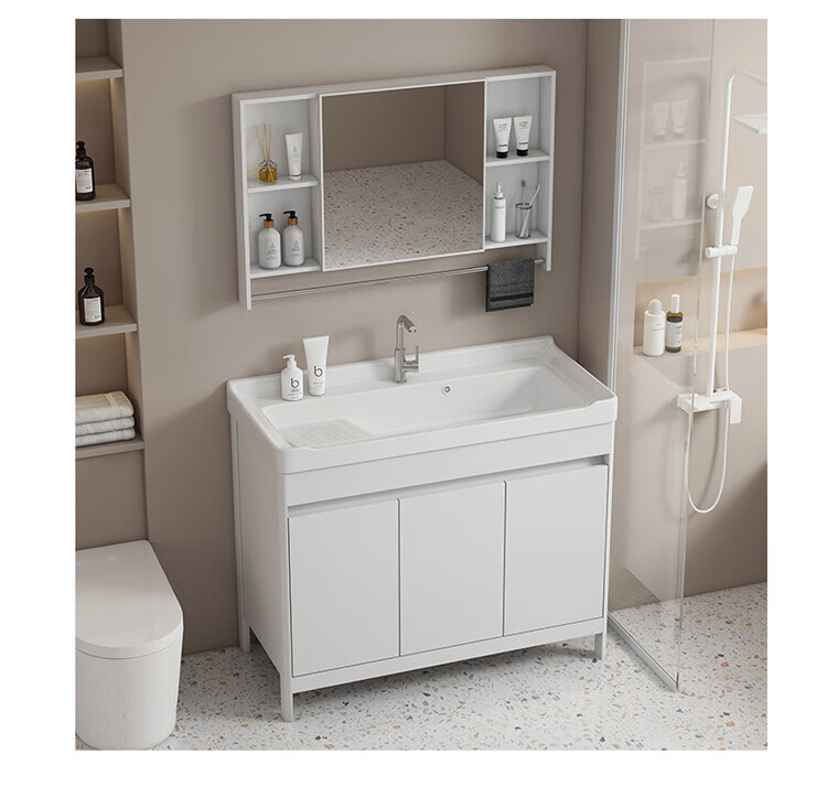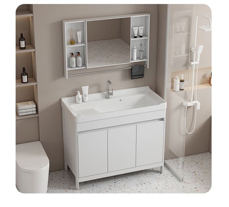 Jomoo's new space aluminum bathroom cabinet floor-standing balcony laundry basin with washboard integrated bathroom ceramic washbasin ds 90cm washboard complete set