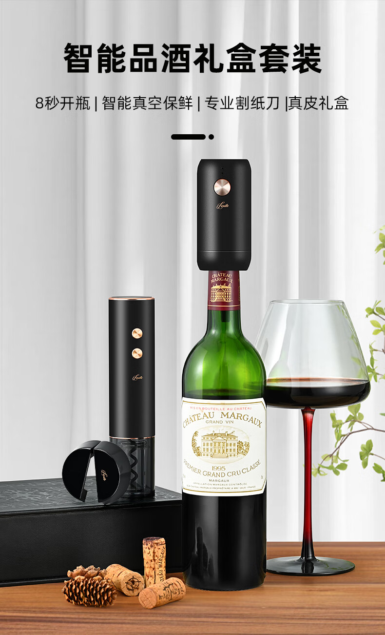 Jisite French brand red wine bottle opener electric wine opener household charging bottle opener gift set light luxury leather box electric bottle opener gift box set