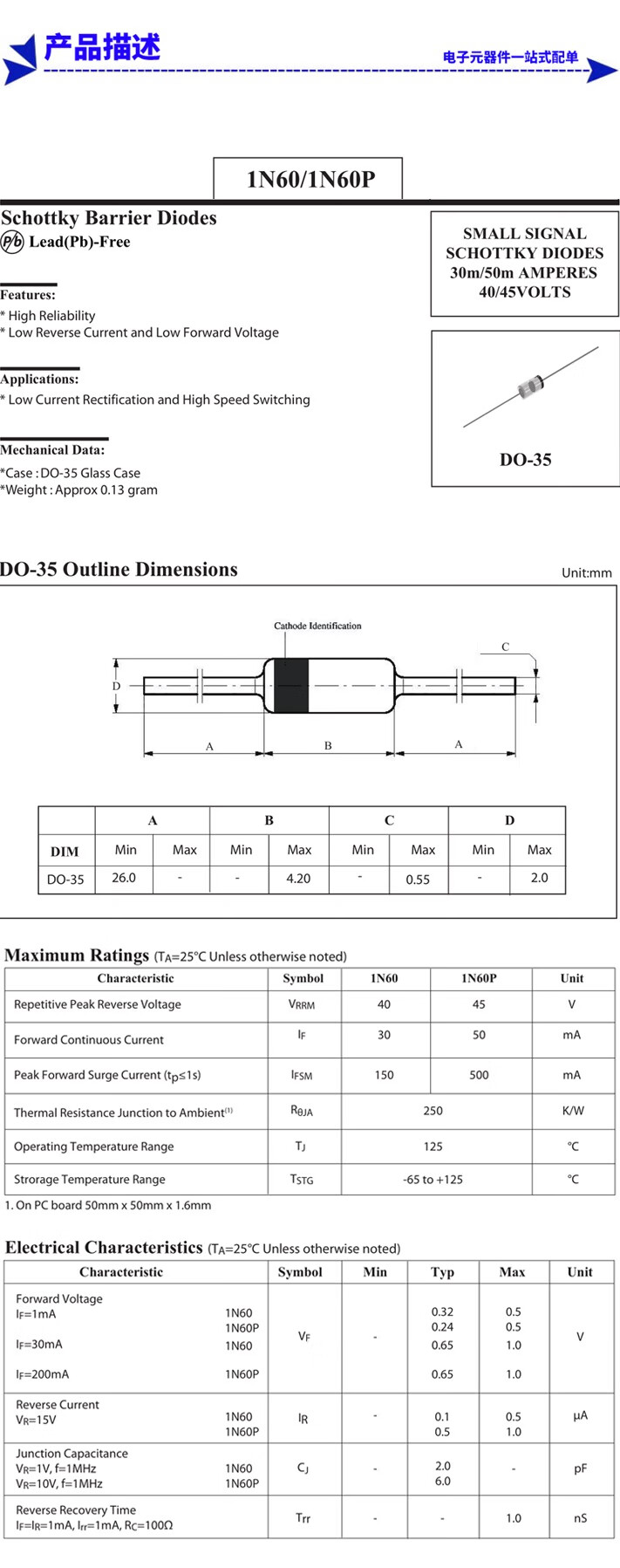 Zejie Schottky germanium detector diode 1N60P IN60P package DO-35 can replace 2AP9 bulk direct plug IN60P (20 pieces)
