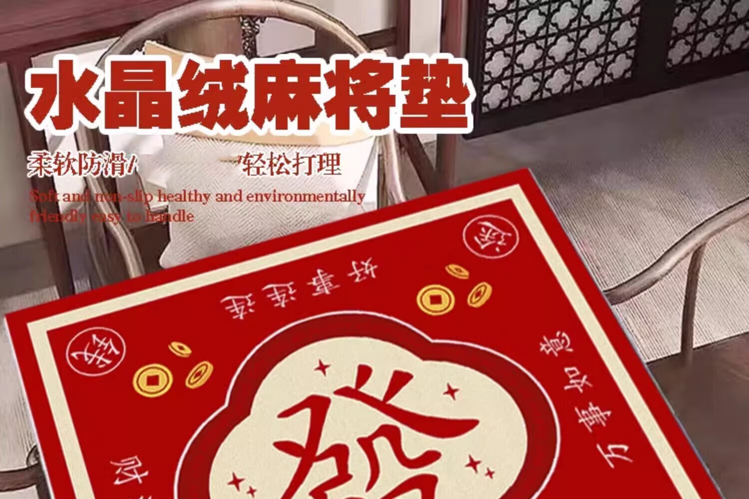 Zhishu New Chinese Mahjong Mat Thickened Silent Non-slip Mahjong Table Mat Tablecloth Square Square Table Poker Card Special Time Lai Lun Red 80*80cm (Best Selling Size)
