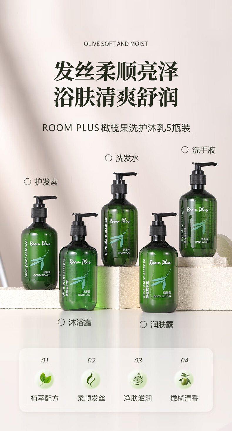 Room Plus Lompas Olive Shampoo and Shower Gel Refreshing and Long-lasting Fragrance Female Hotel Same Style Official Authentic Washing and Care Set Olive Shower Gel