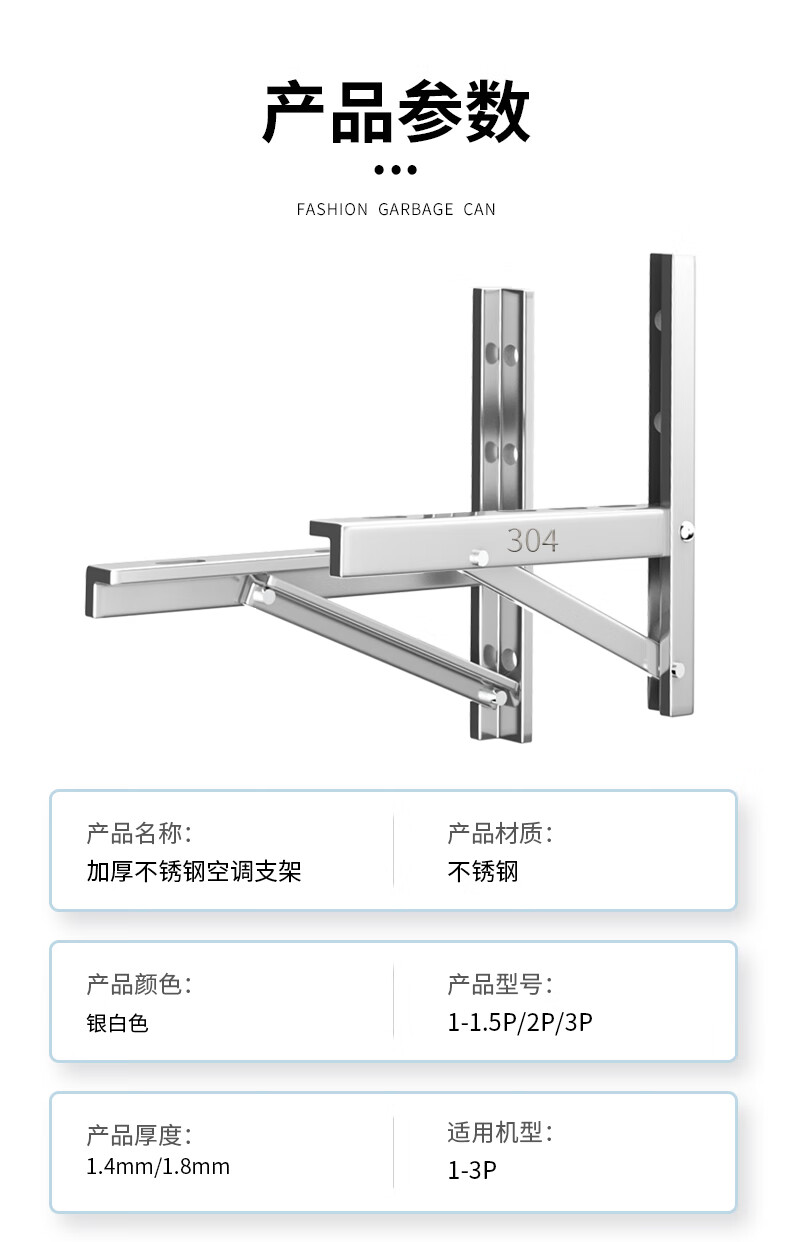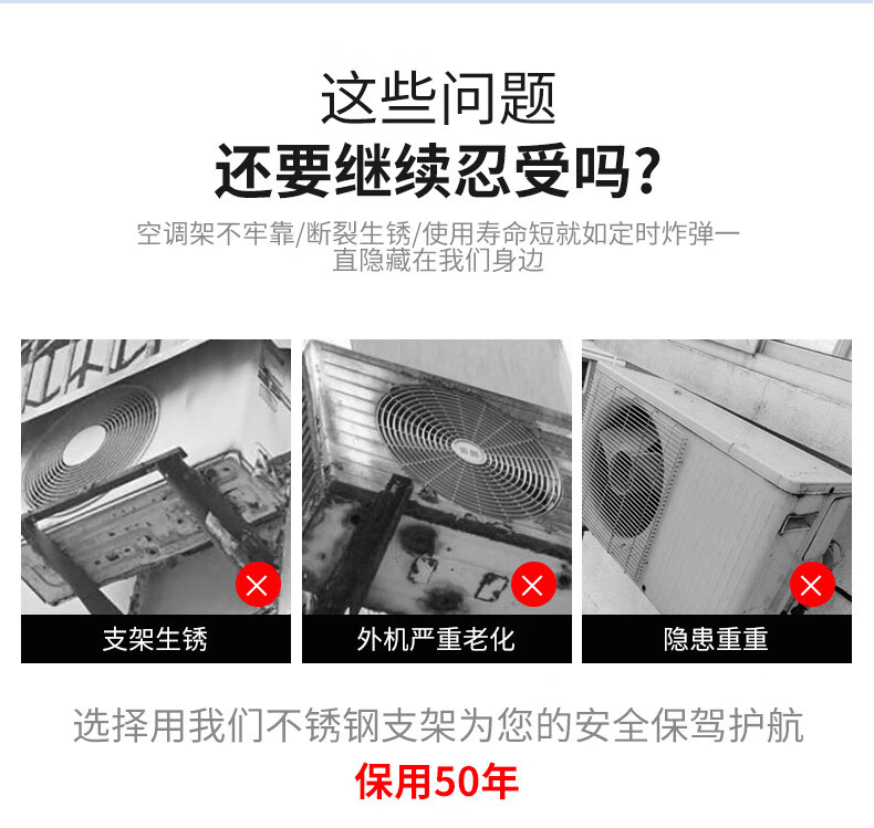 Danlan thickened 304 stainless steel air conditioner outdoor unit bracket universal outdoor unit air conditioner bracket 1.5 hp 2/3 hp air conditioner shelf 1 hp - large 1.5 hp stainless steel 1.3 thick/with full set of screws