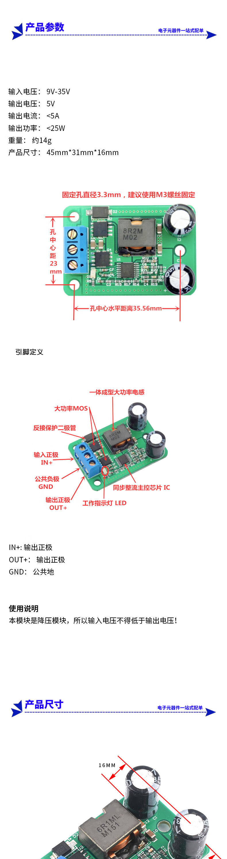 Zejie 24v/12V to 5V/5A power supply DC-DC step-down module IN9-35V super LM2596S replaces 055L 9-35V to 5V5A USB+ terminal output
