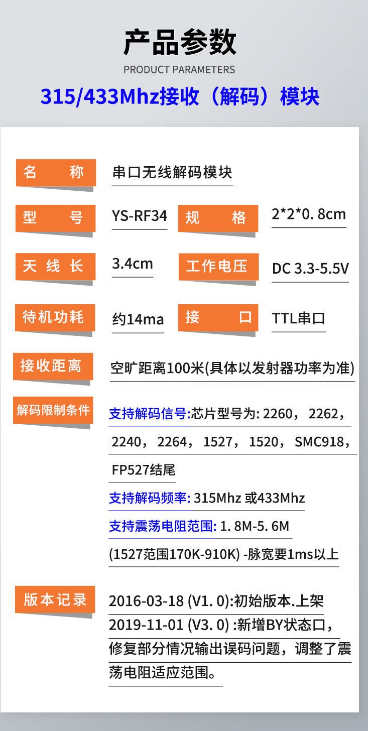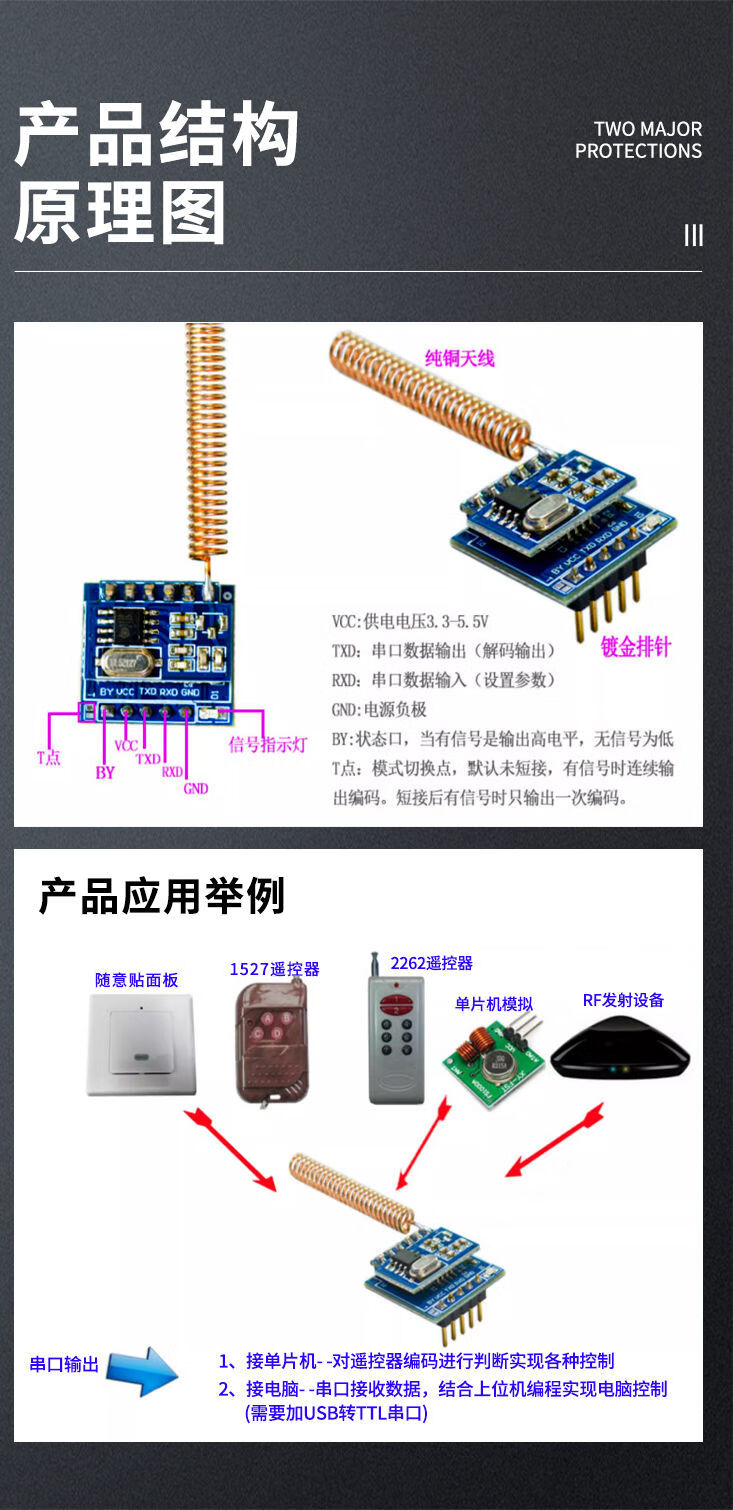 Zejie RF codec module 315 433Mhz wireless remote control switch control serial communication to RF module 433Mhz receiving (decoding) module