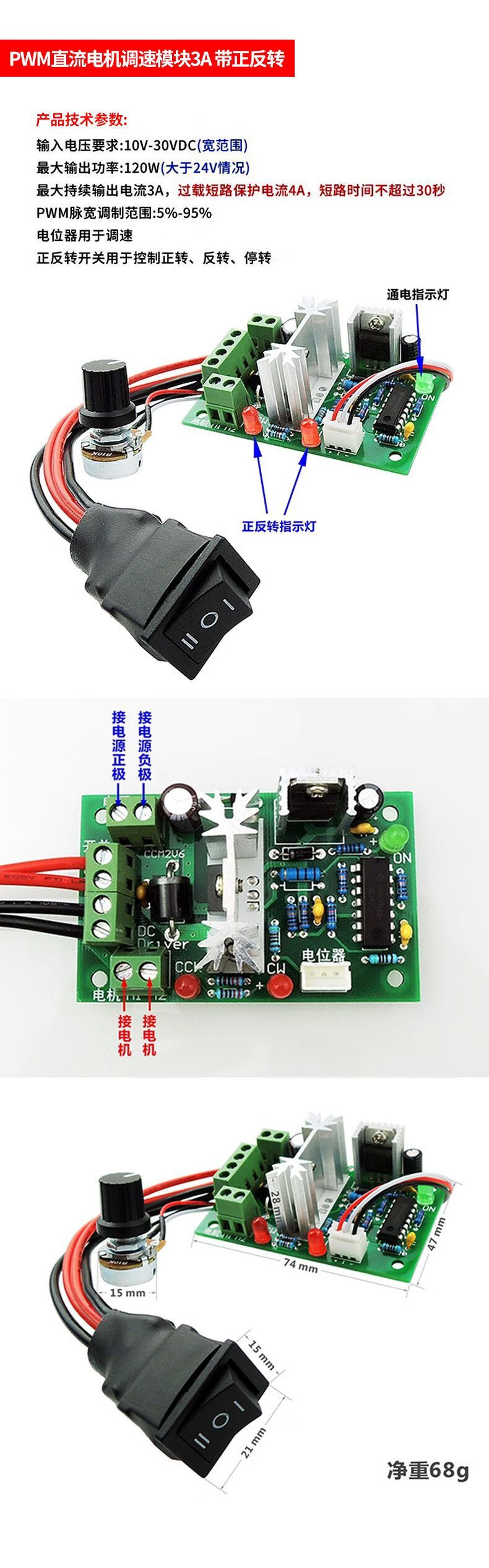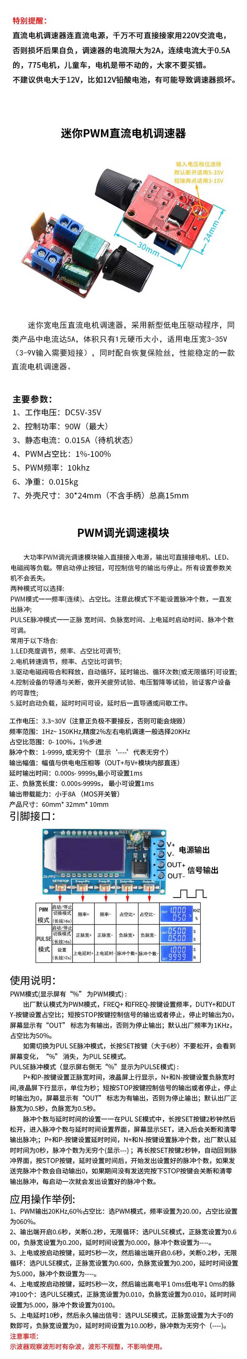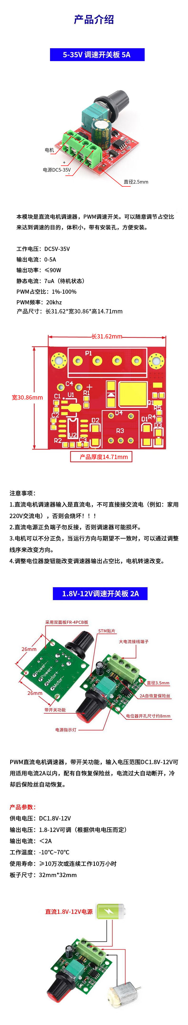 Zejie PWM DC motor speed regulator 5V-16V12V speed control switch 10A LED dimming speed control module 3-35V 1.812V adjustable switch 2A