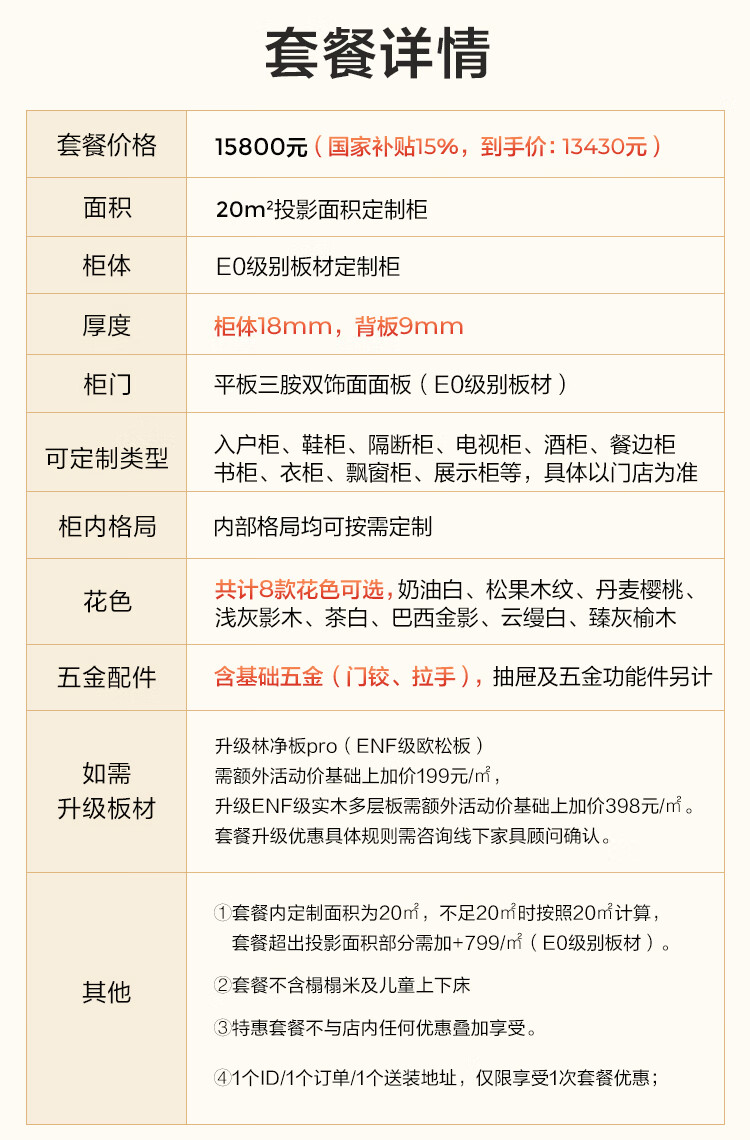 Lin's Home Furnishing National Subsidy Package Whole House Customized Wardrobe TV Cabinet Overall Furniture 15800 Package Package Price