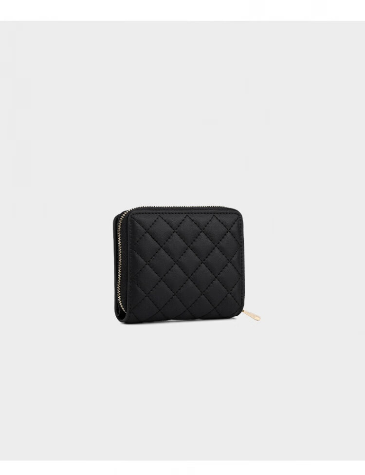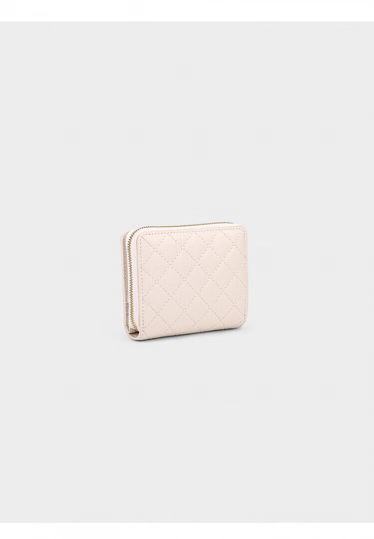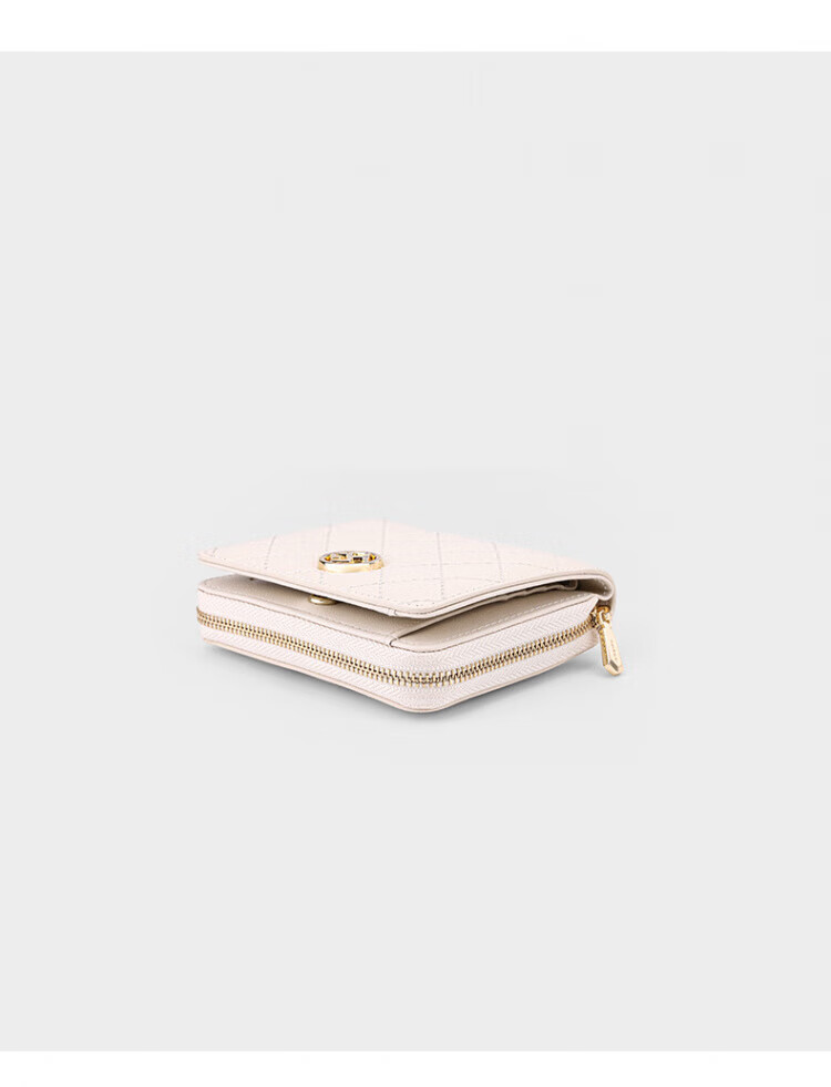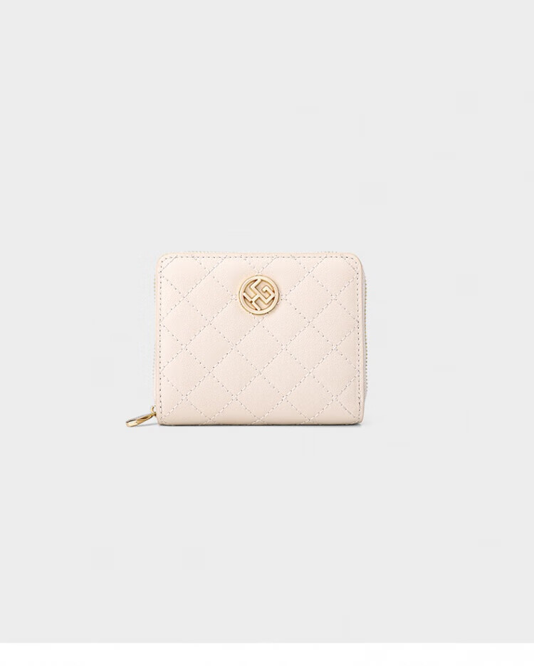 Honggu New Wallet Women's Short Folding Mini Thin Wallet Fashionable Diamond Coin Clip Small Bag Beige