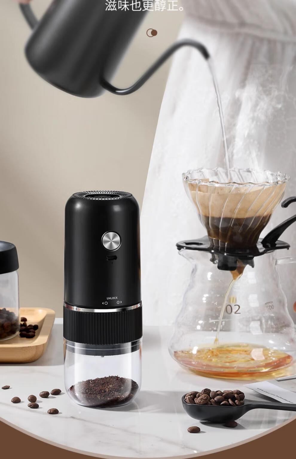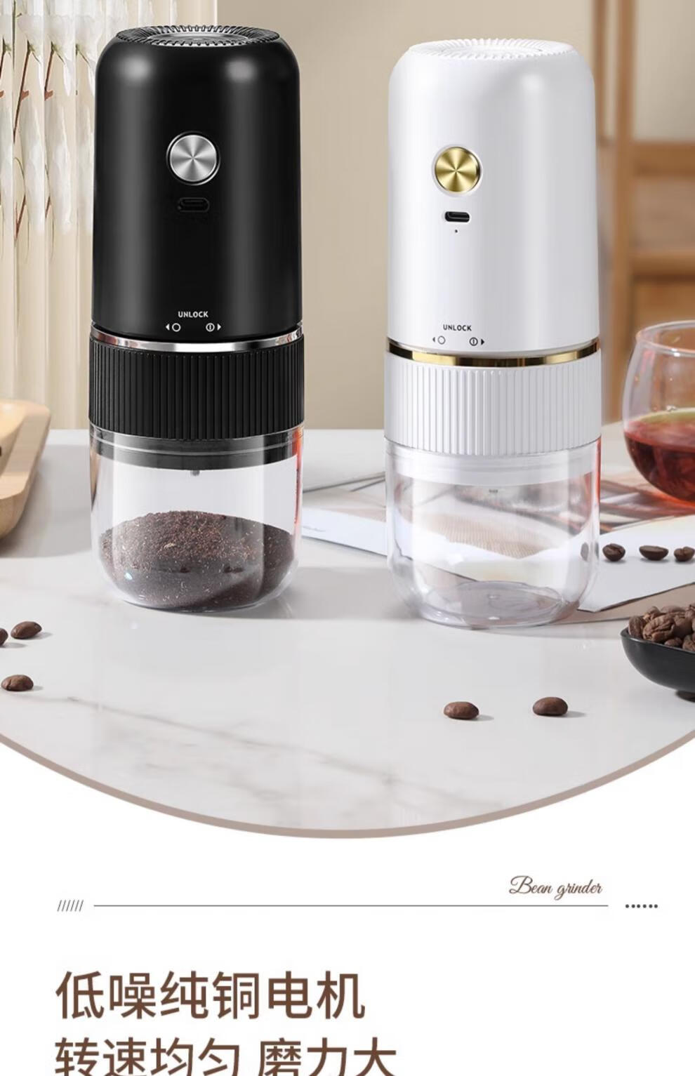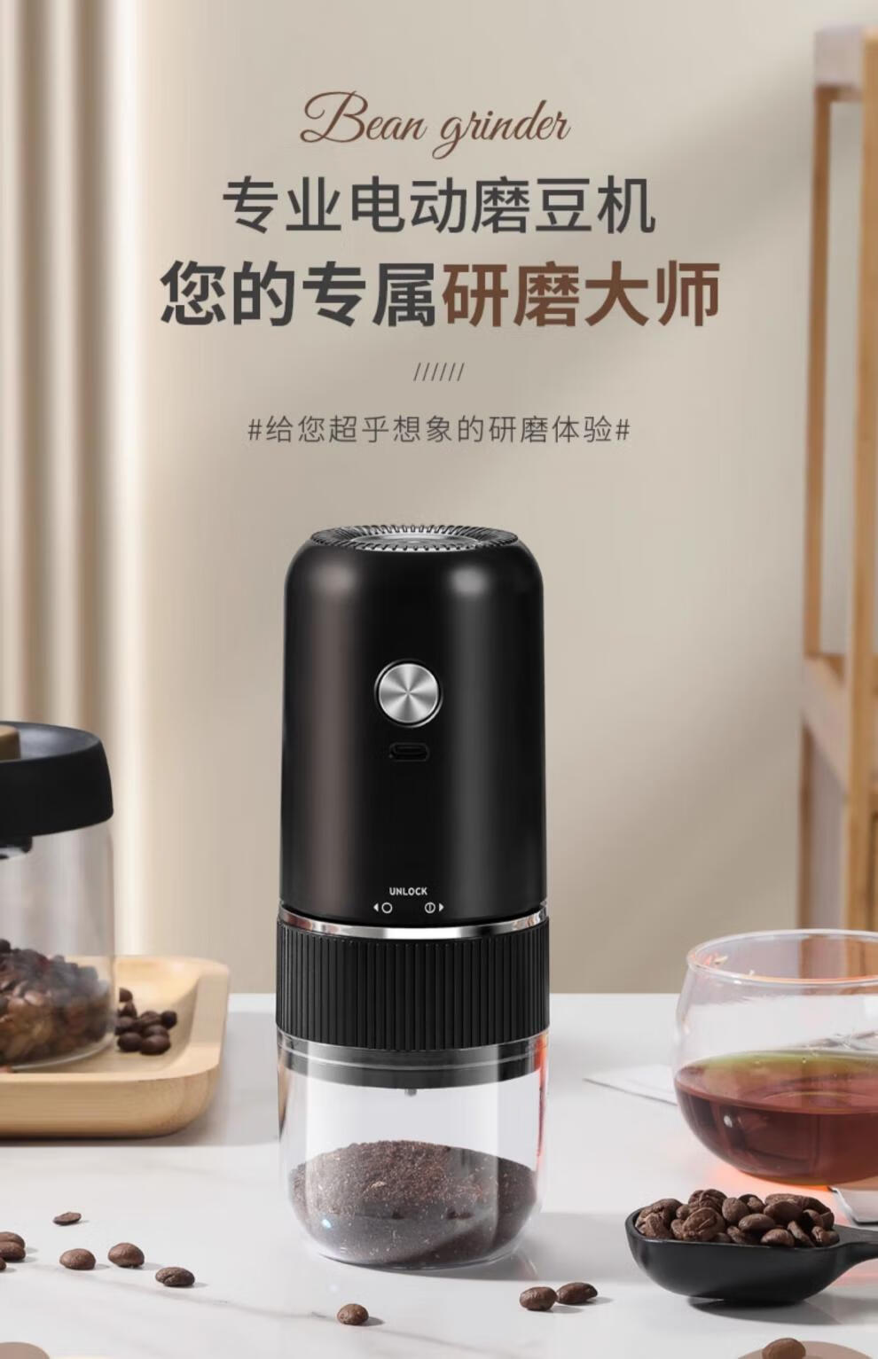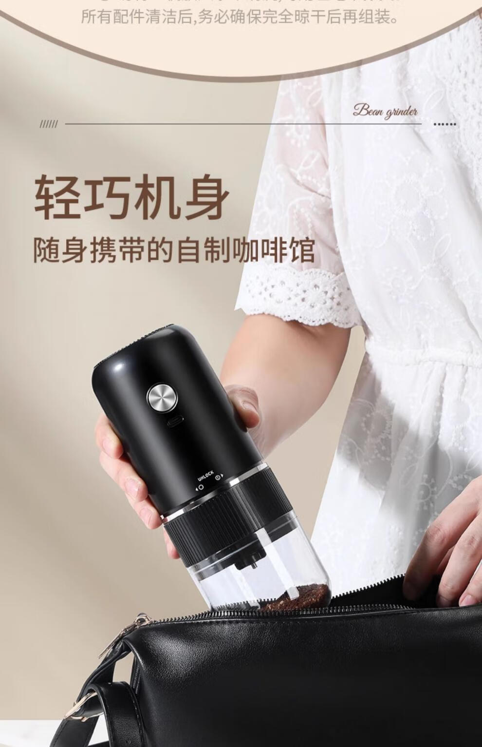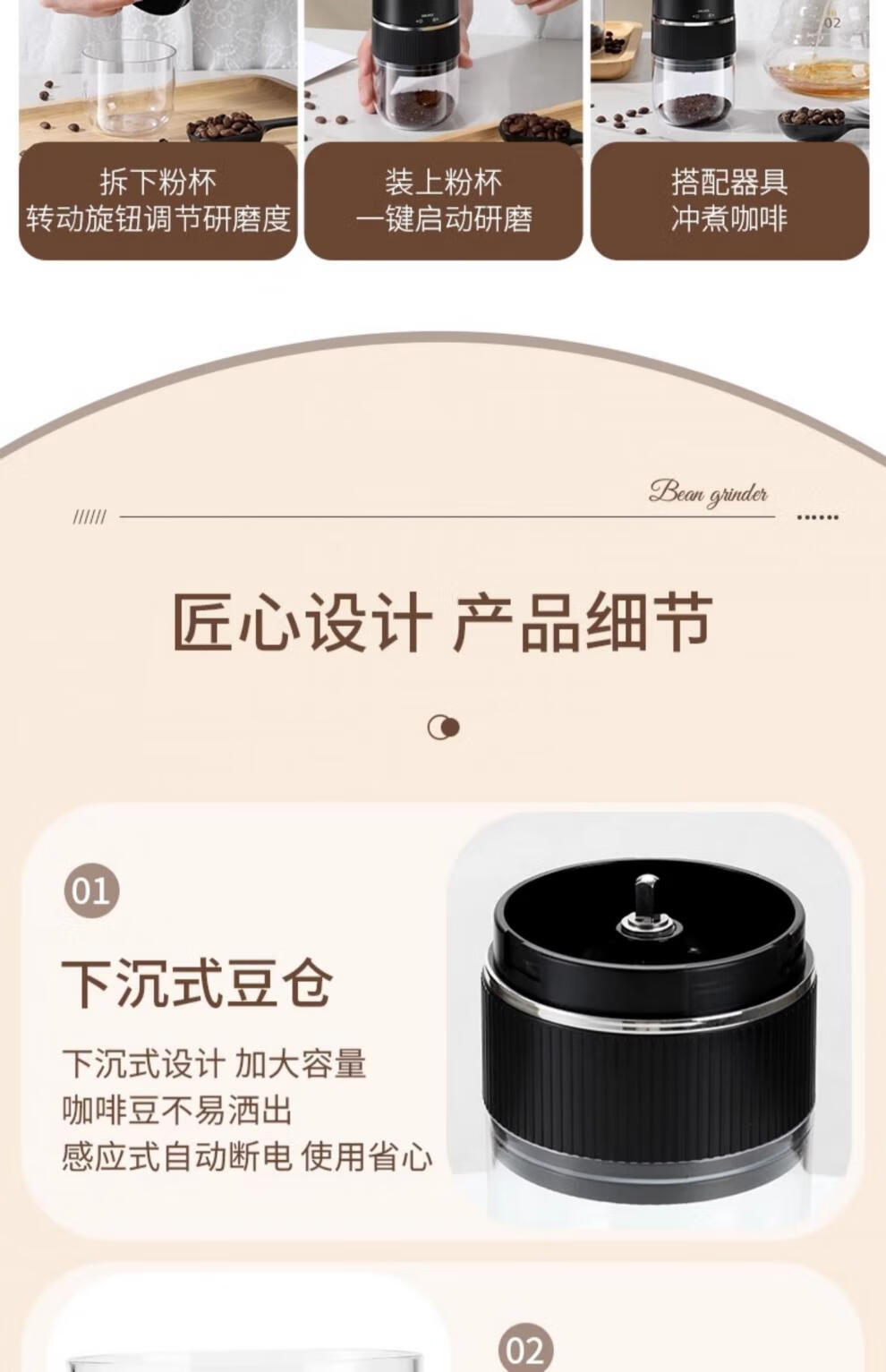 Tuojin Japan imported high-quality coffee bean grinder portable small household freshly ground grinder automatic coffee black 40-speed external adjustment + 3 times battery life delivery volume
