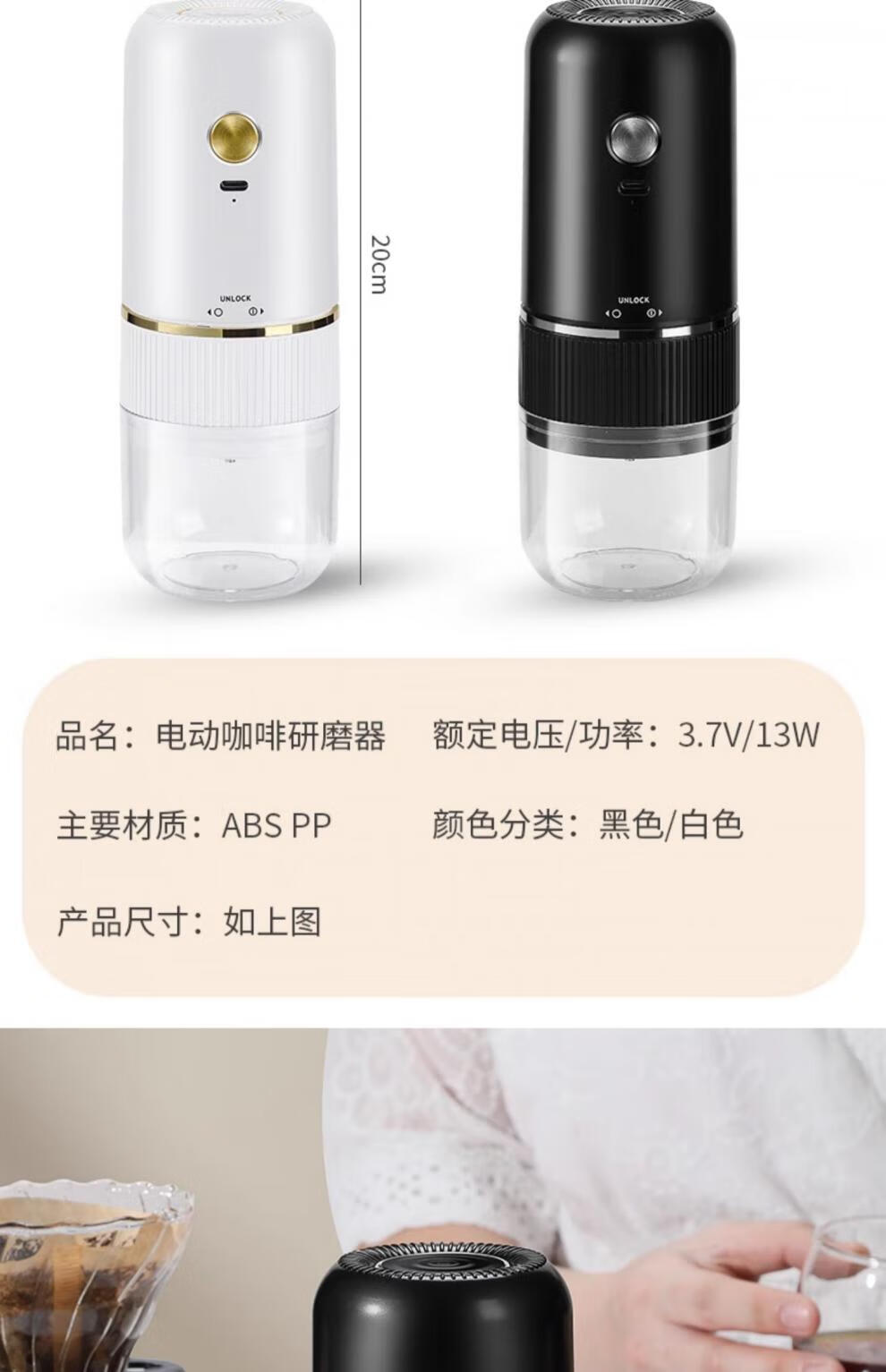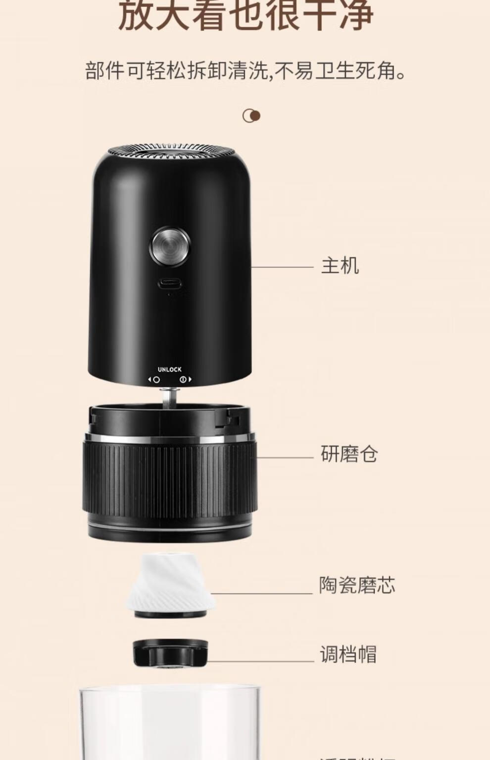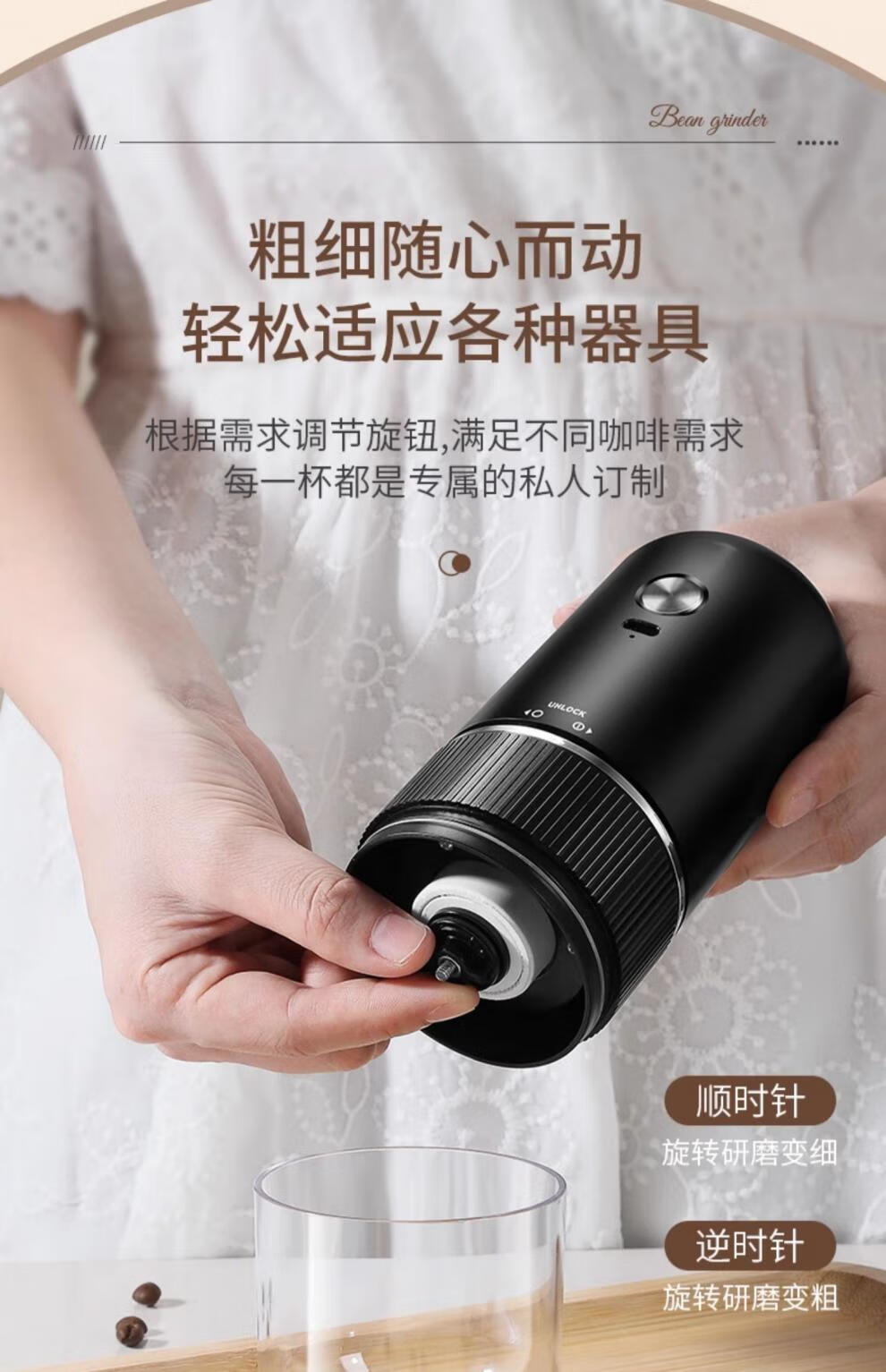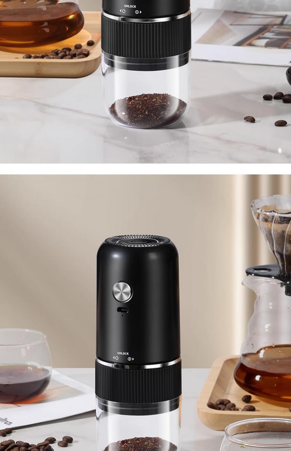 Tuojin Japan imported high-quality coffee bean grinder portable small household freshly ground grinder automatic coffee black 40-speed external adjustment + 3 times battery life delivery volume