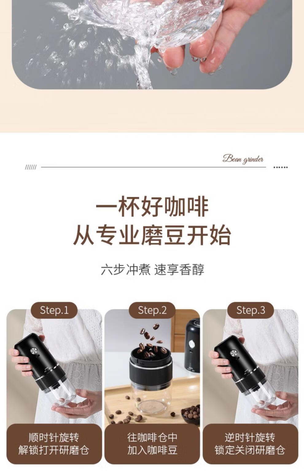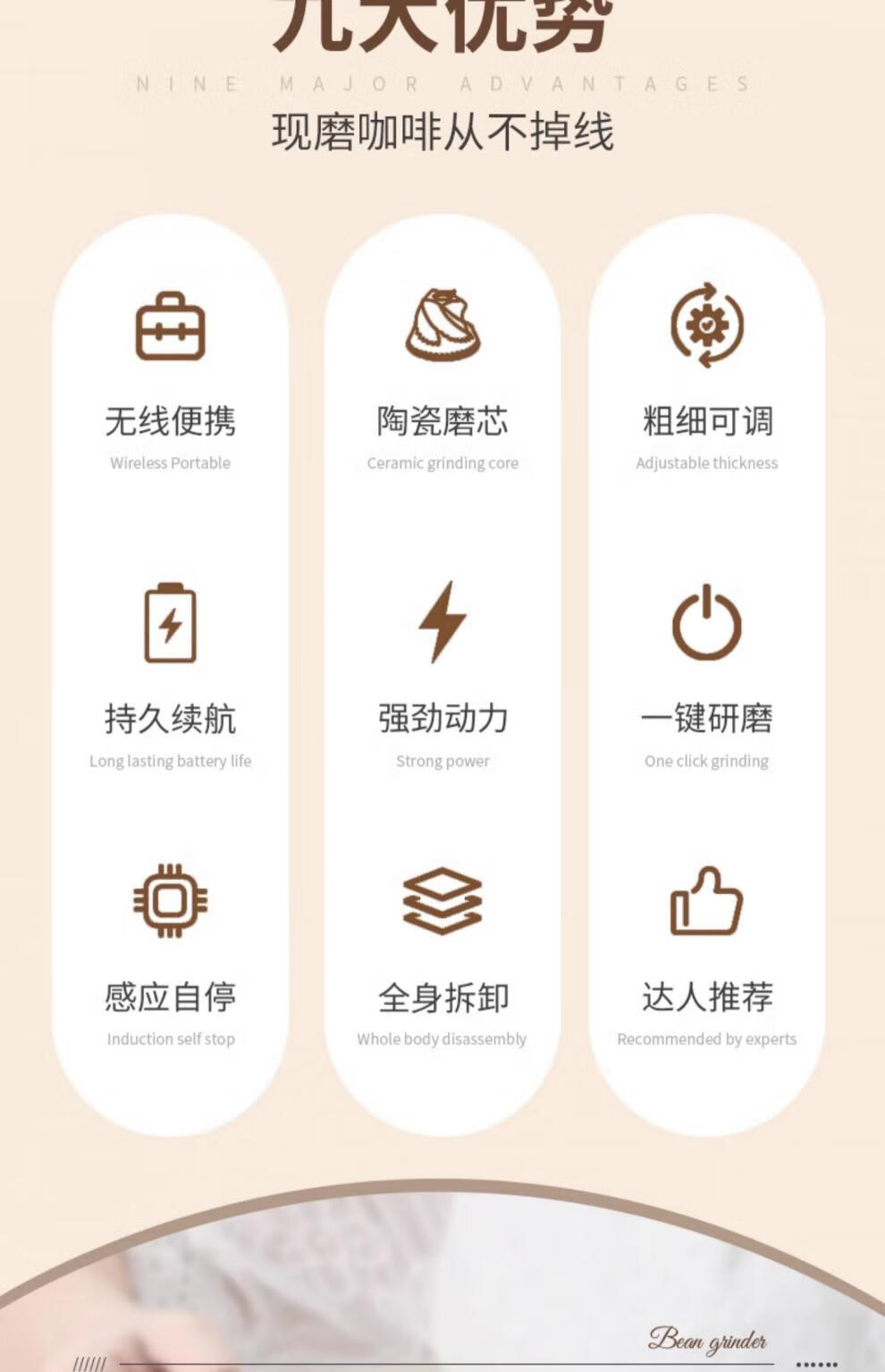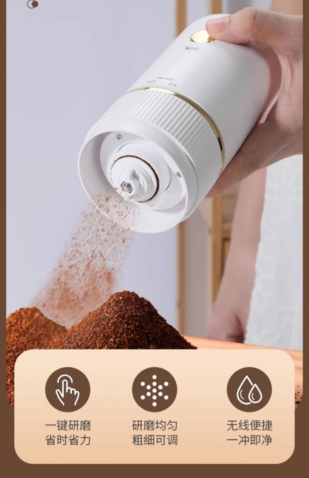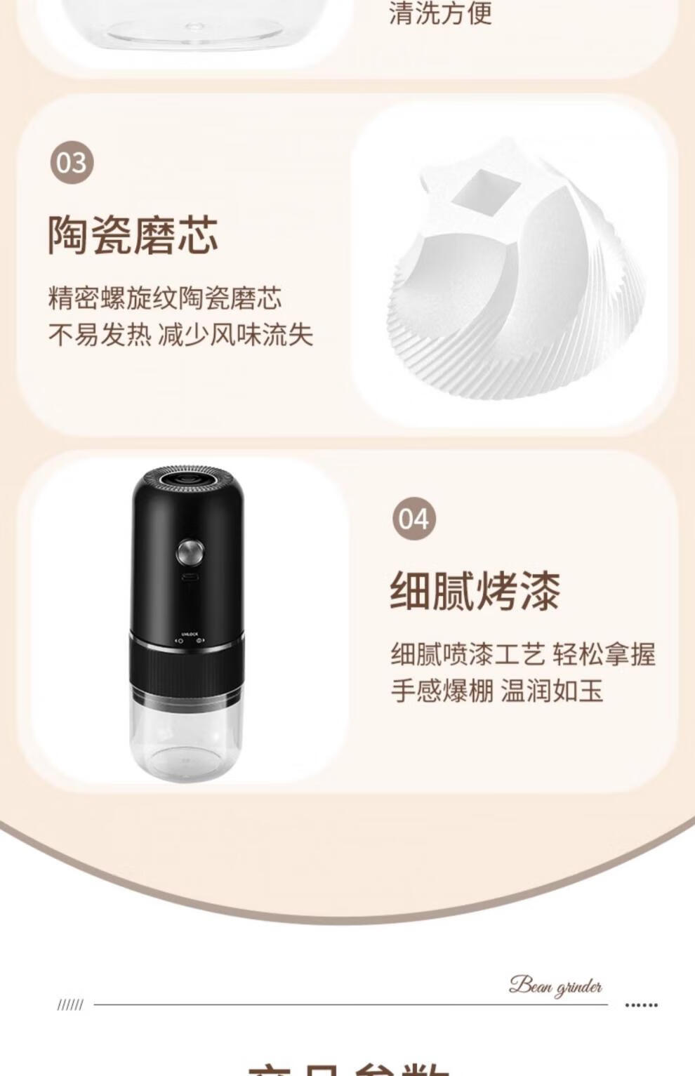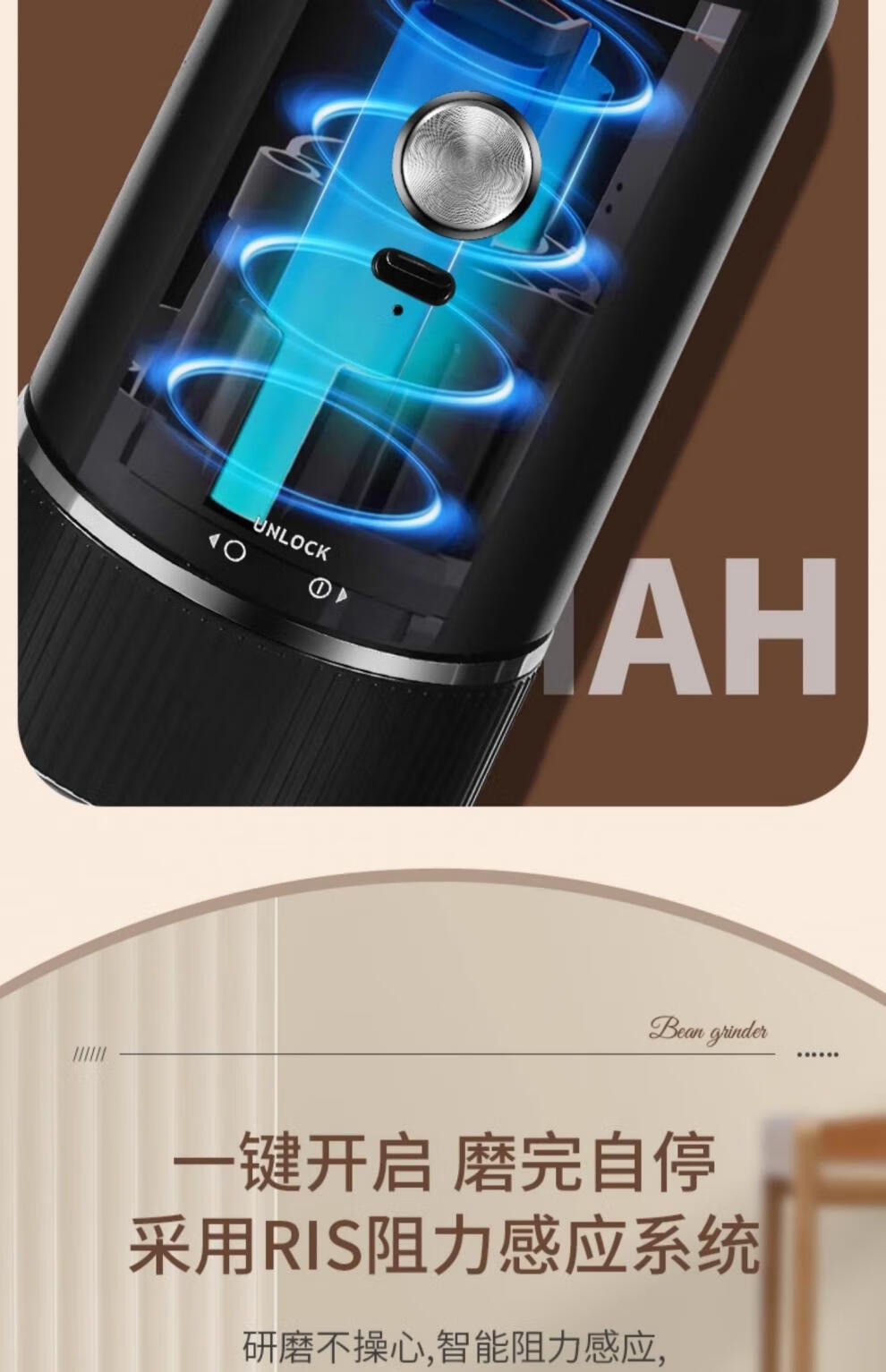 Tuojin Japan imported high-quality coffee bean grinder portable small household freshly ground grinder automatic coffee black 40-speed external adjustment + 3 times battery life delivery volume