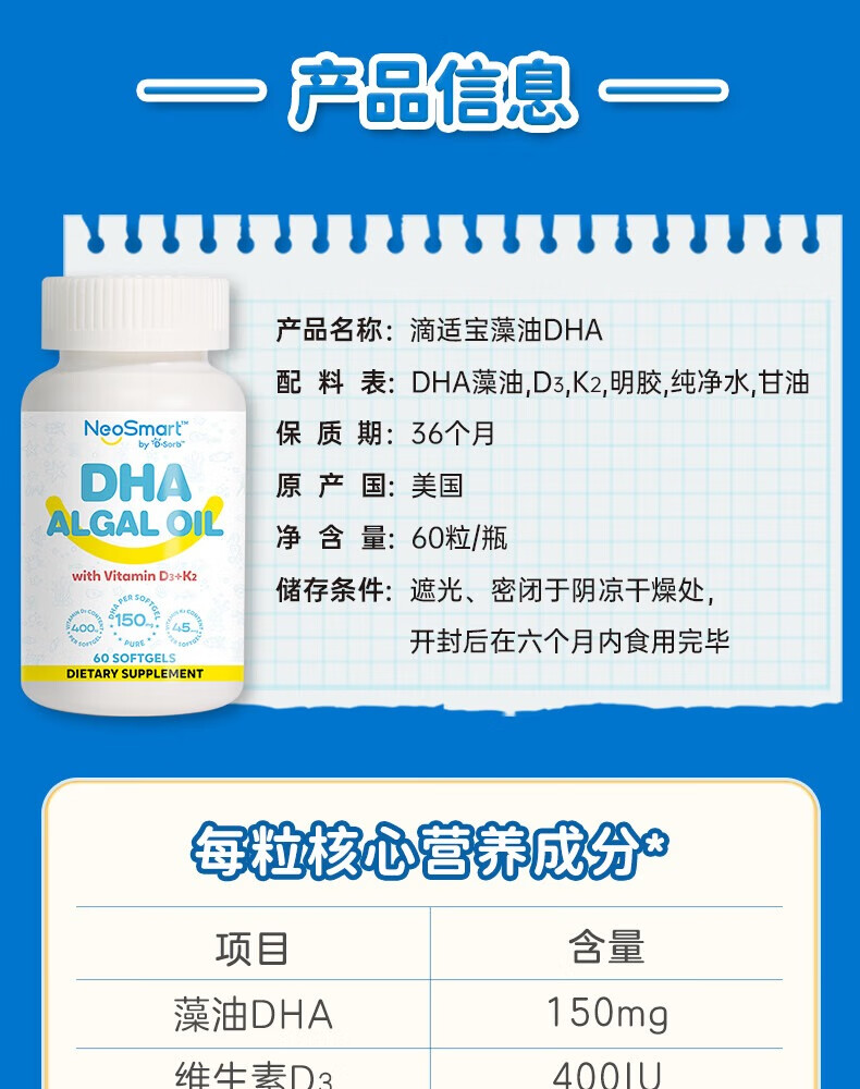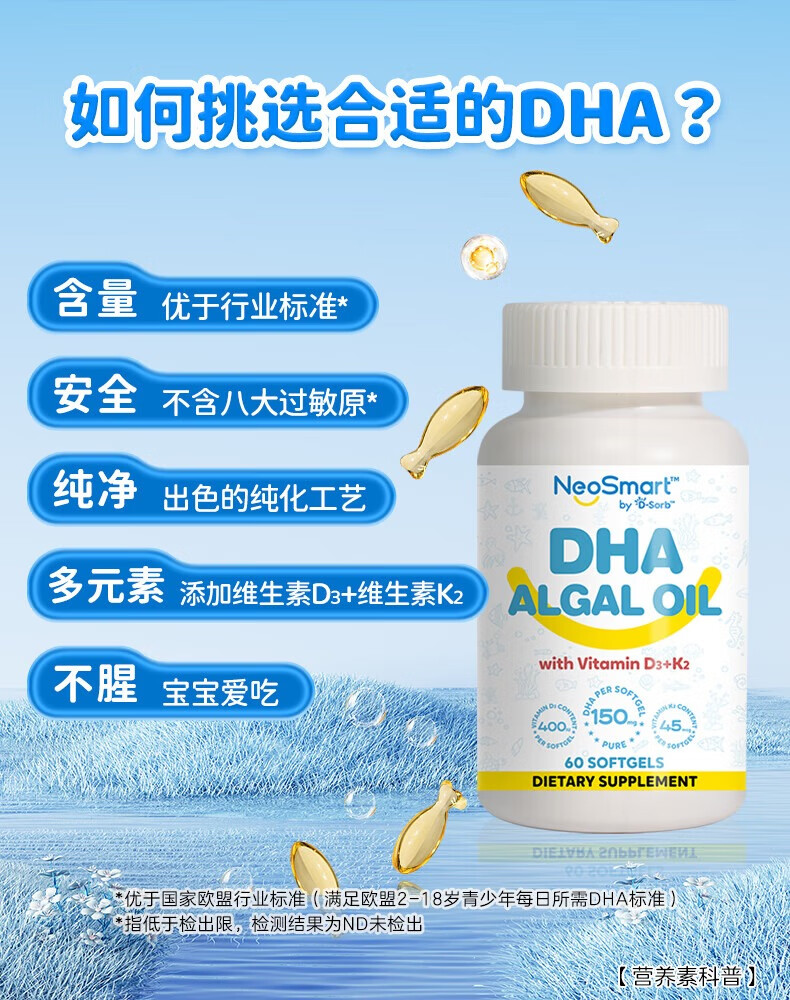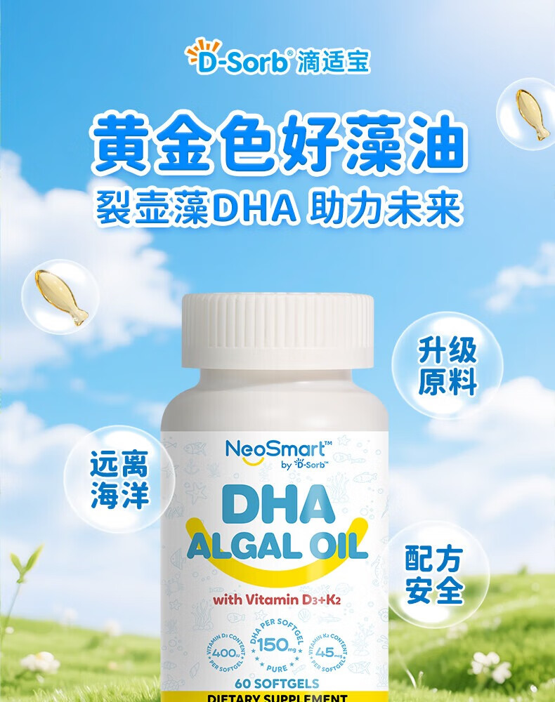 D-Sorb D-Sorb infant dha contains d3k2 children's multi-effect algae oil 60% high-purity algae oil DHA high-purity multi-effect algae oil DHA 60 capsules/box