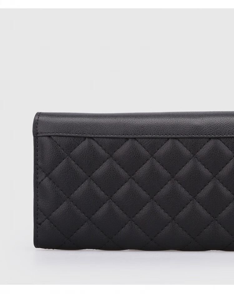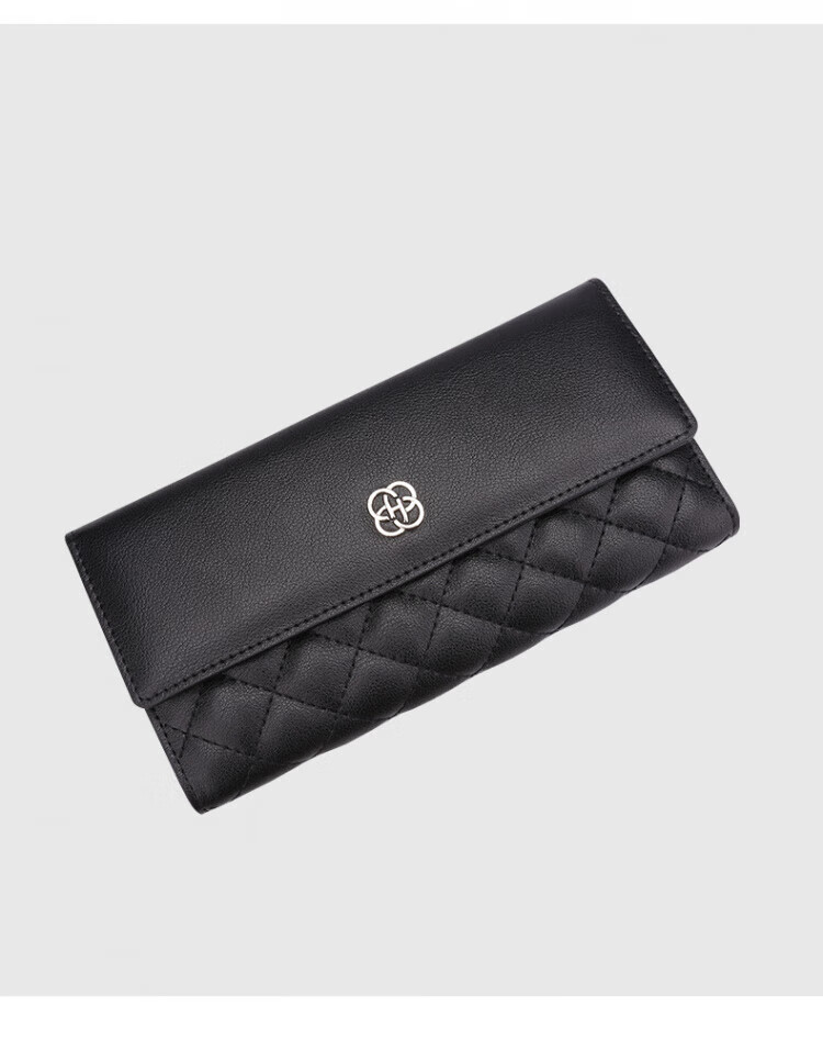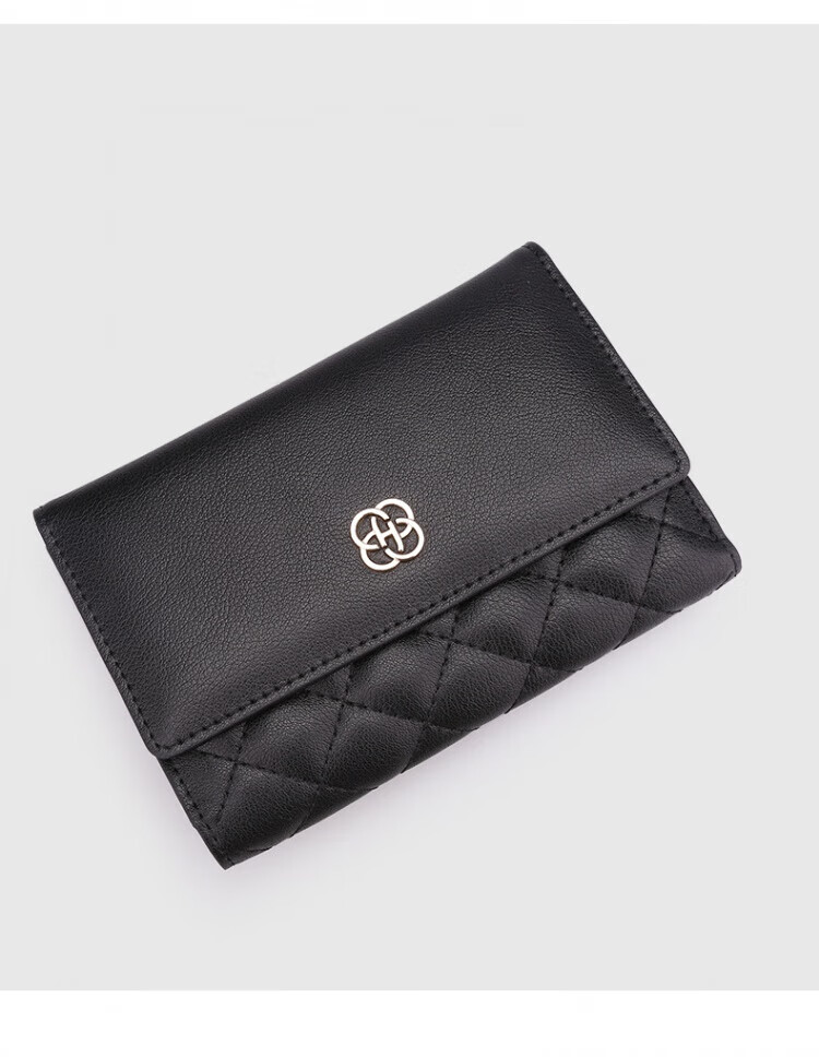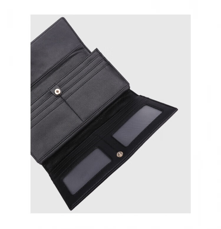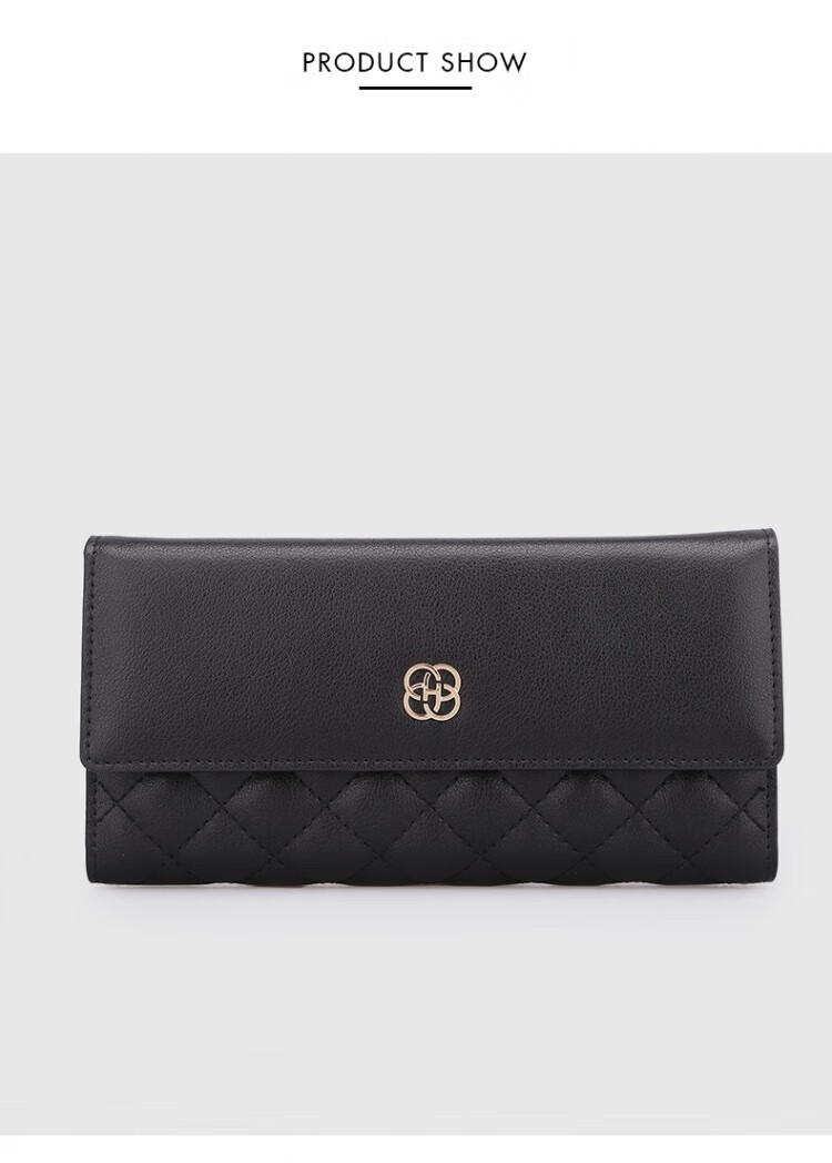 Honggu New Wallet Women's Long Korean Style Simple Wallet Three-fold Multifunctional Wallet Small Handbag Clutch Black (Long Style)