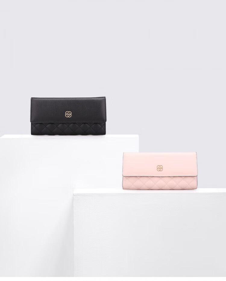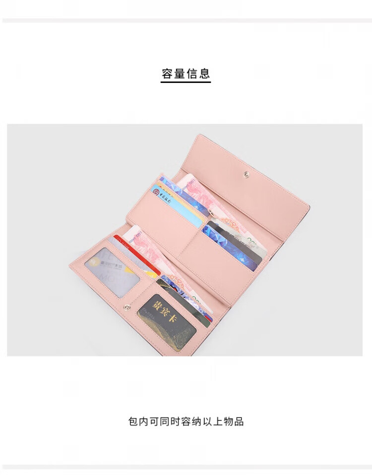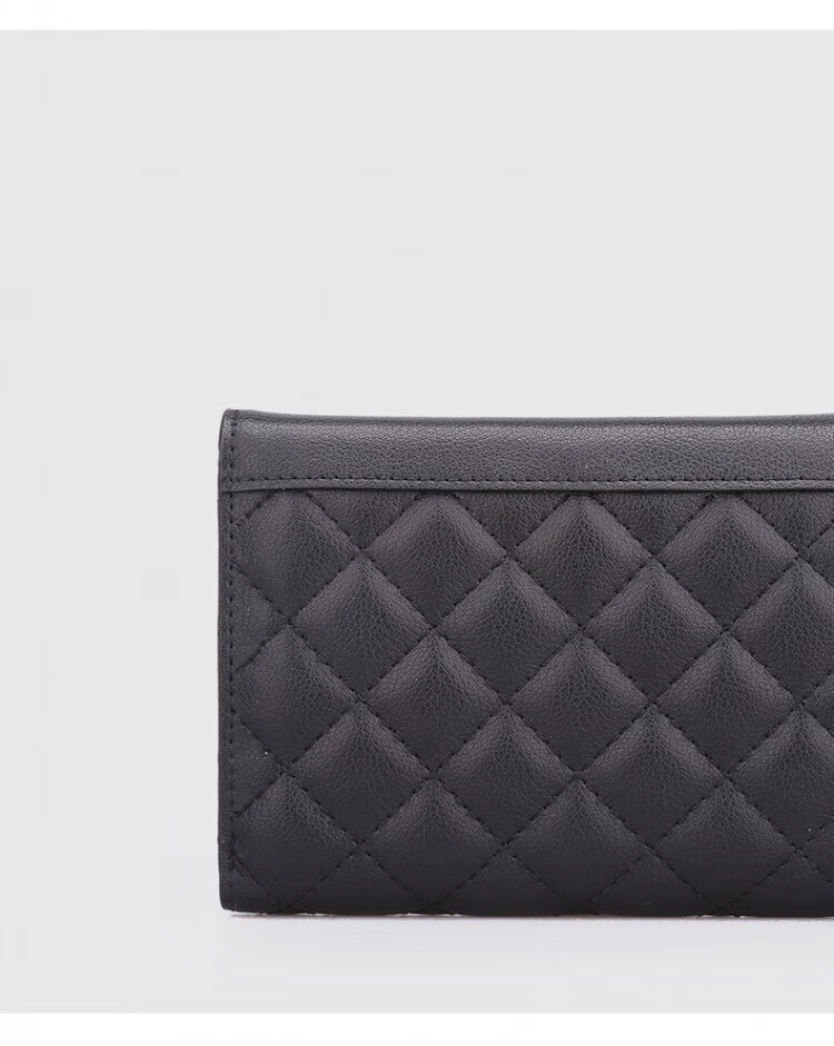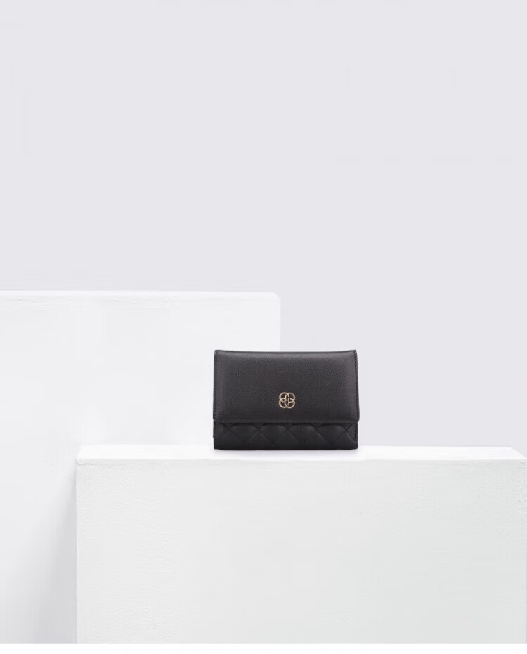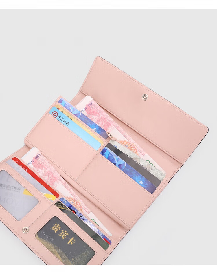 Honggu New Wallet Women's Long Korean Style Simple Wallet Three-fold Multifunctional Wallet Small Handbag Clutch Black (Long Style)