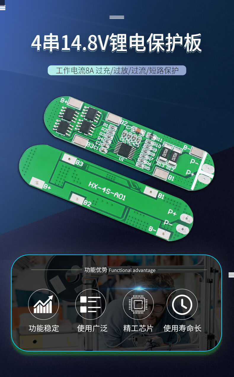 Zejie 4-string 14.8V lithium battery protection board 18650 lithium battery overcharge, over-discharge, over-current, short-circuit charging protection board module