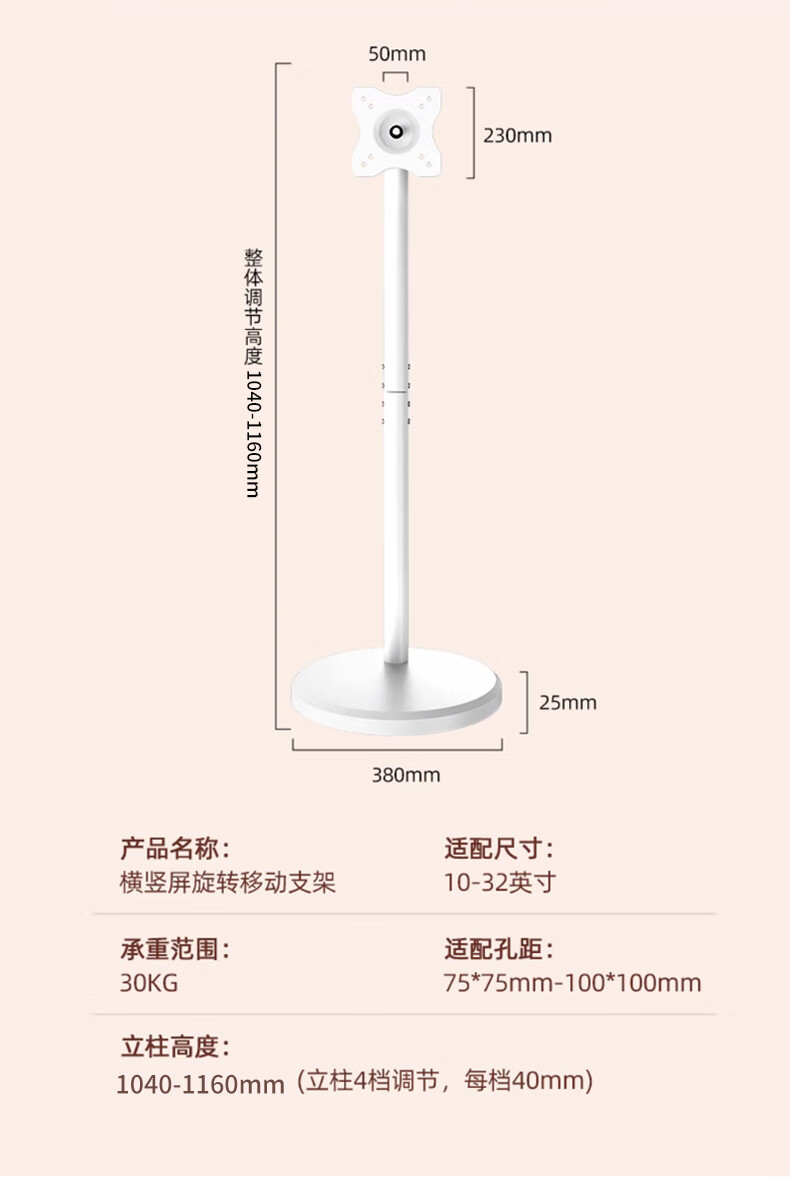 Beishi Movable Monitor Stand Mobile Floor Stand TV Stand Bestie Machine Xpress Screen TV Fitness Projector Large Flat Panel Universal Monitor Stand TV Hanger 10-32 Inch/Screen Rotation 360/Universal Silent Wheel