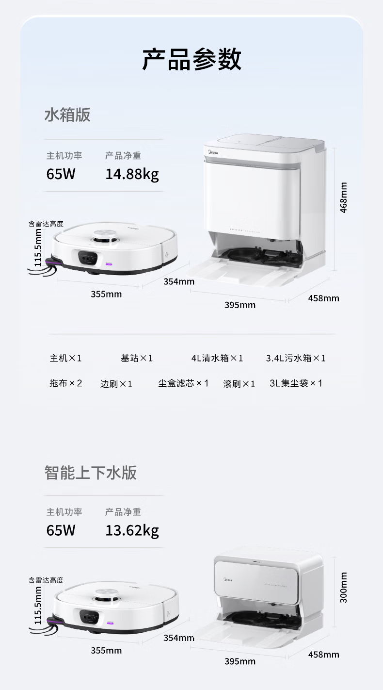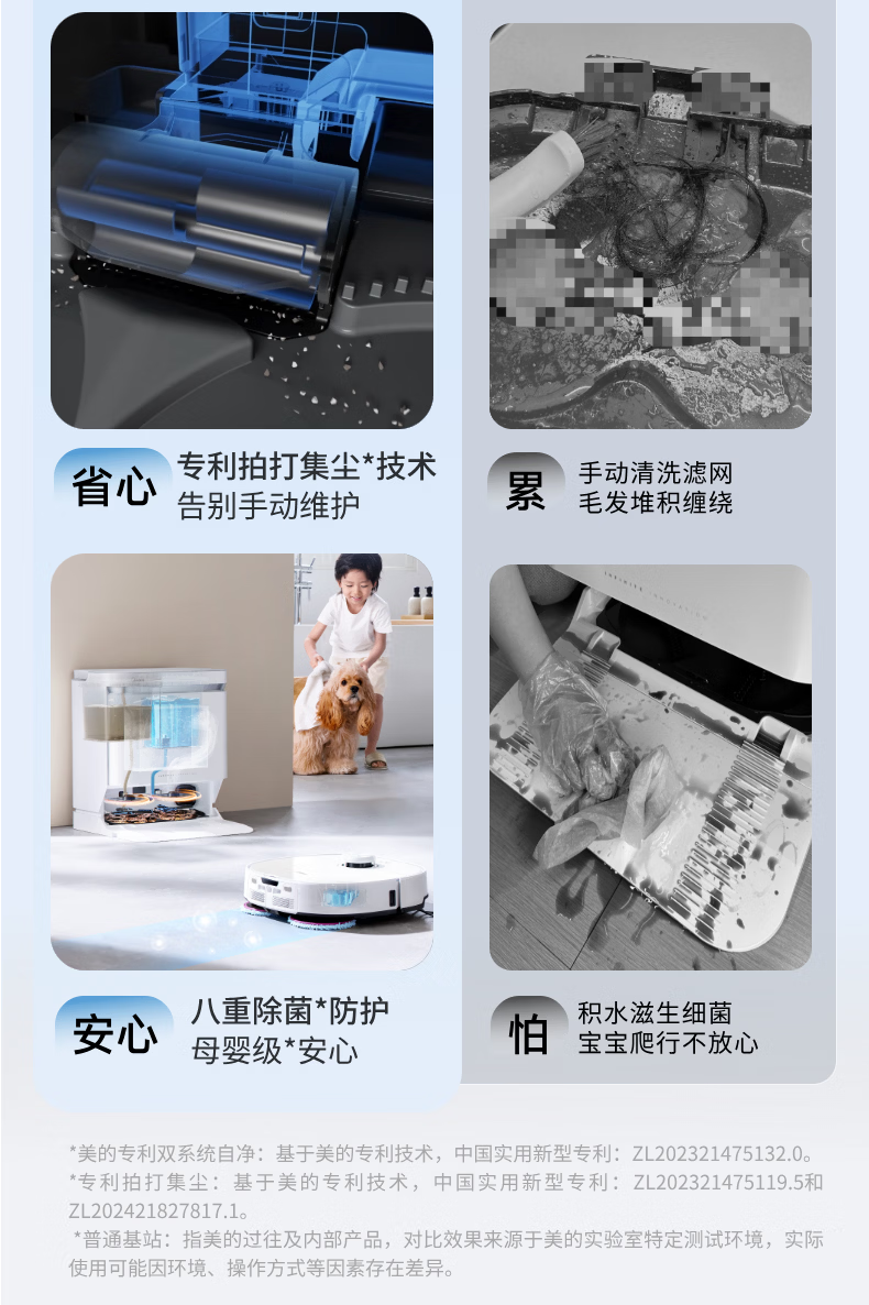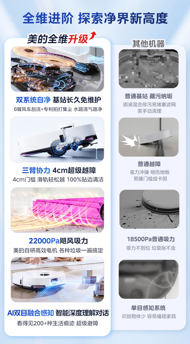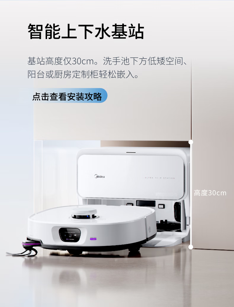 Midea sweeping robot AI binocular perception system, strong suction power 22KPa, obstacle crossing 4cm, 3-claw anti-entanglement system, hurricane washing and drying, 8-layer health antibacterial V16Pro water tank version