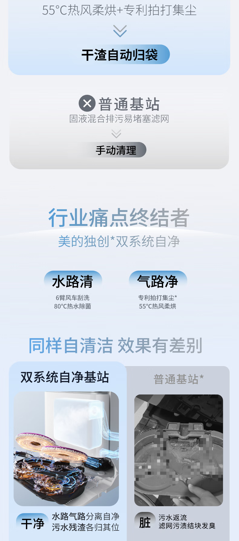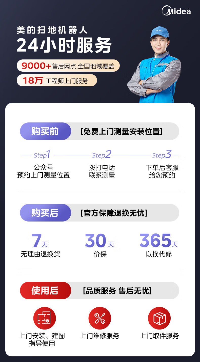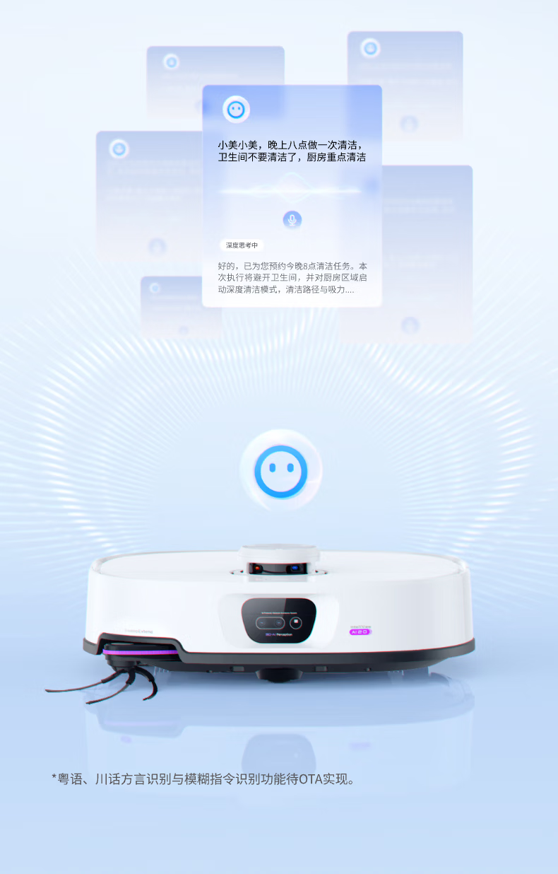 Midea sweeping robot AI binocular perception system, strong suction power 22KPa, obstacle crossing 4cm, 3-claw anti-entanglement system, hurricane washing and drying, 8-layer health antibacterial V16Pro water tank version