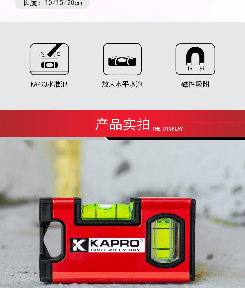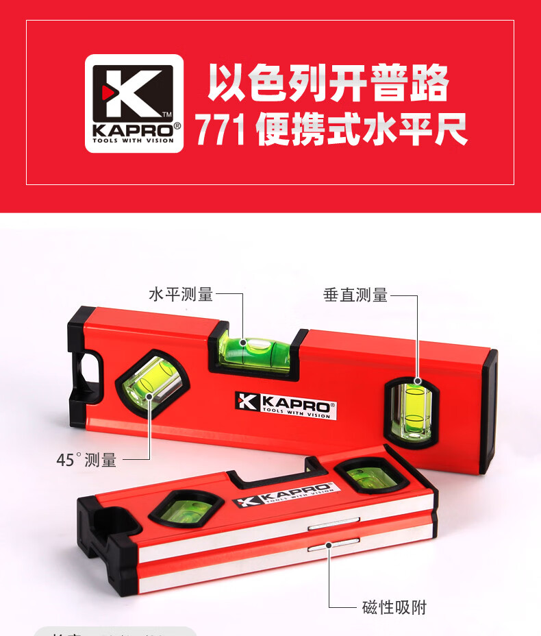 KAPRO Israel kapro Cape Road level strong magnetic high-precision mini pocket small thickened drop-resistant aluminum alloy 771 10cm strong magnetic 2 level bubbles