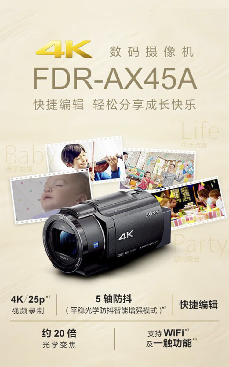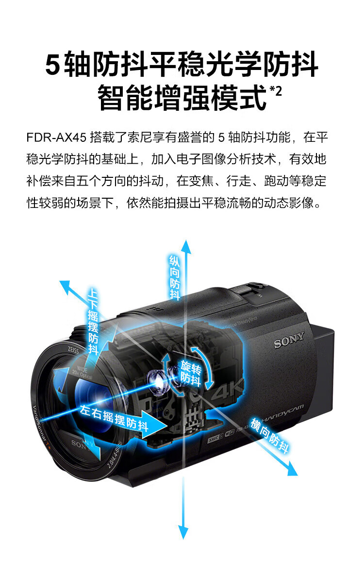 Sony (SONY) AX60 professional 4K camera AX30 AX40 AX45A New five-axis anti-shake camera AX45 infrared night camera DV photography live conference shooting Sony AX30 black package two (64G card + original spare battery)
