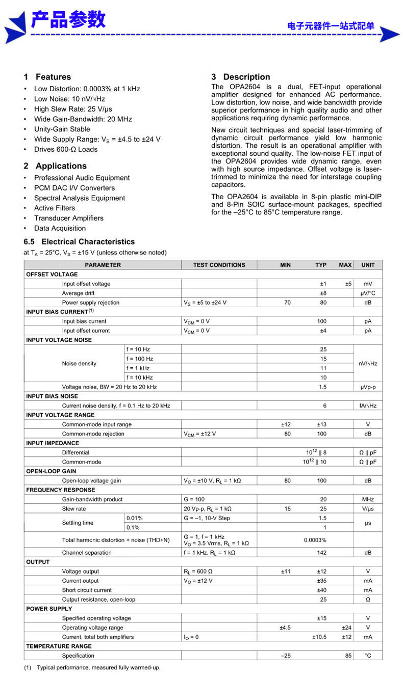 Zejie Direct Plug OPA2604AP OPA604 Fever Dual Operational Amplifier DIP-8 Direct Plug OPA604 DIP-8