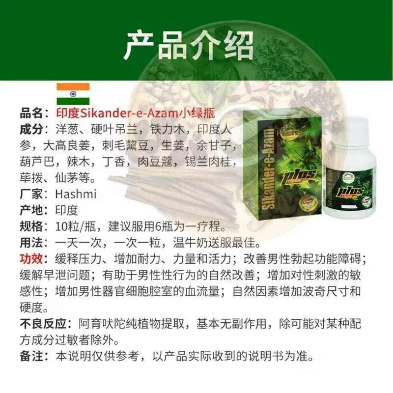 SIKANDER-E-AZAM printed small green bottle Hong Kong direct mail original i-printed genuine goods guaranteed small green bottle healthy and nourishing enhanced version plus printed small green bottle * 3 bottles recommended therapeutic pack