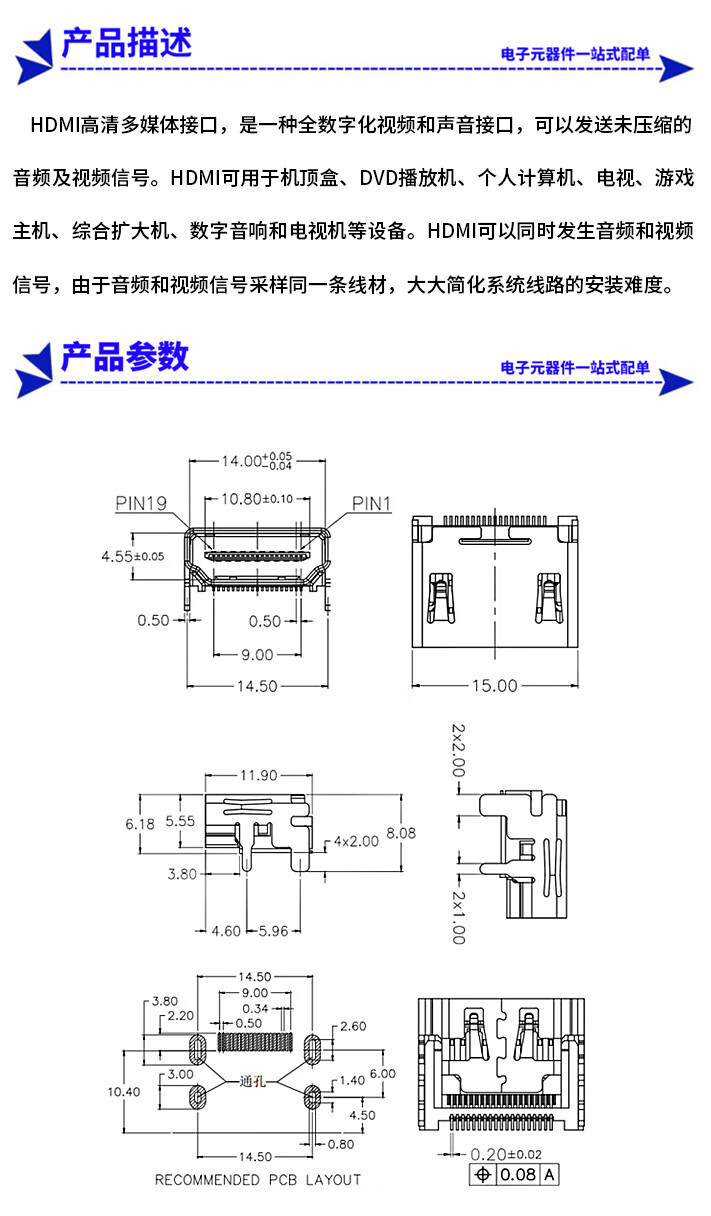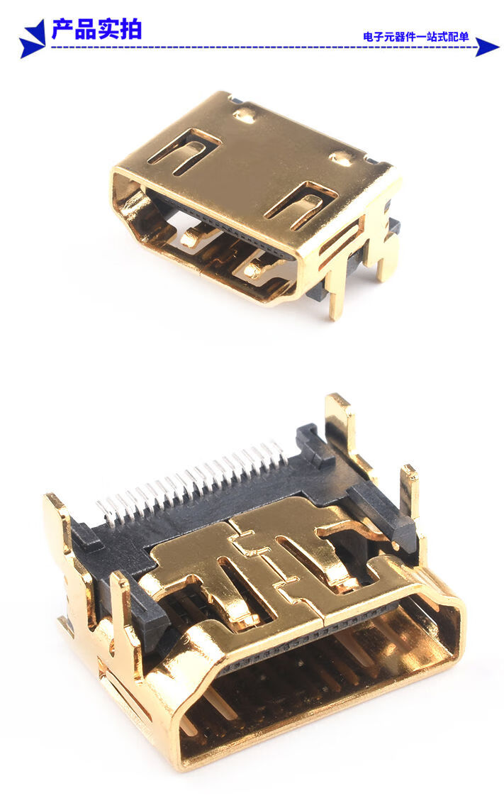 Zejie HDMI patch socket 90 degree female socket 19P patch type HD socket multimedia interface type A gold plated