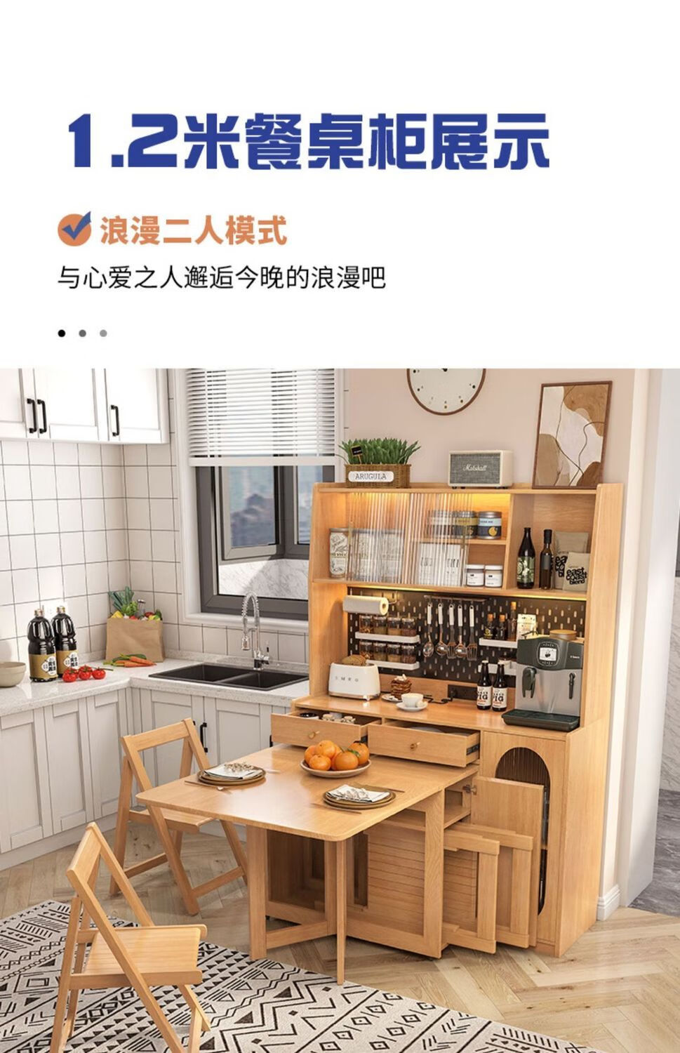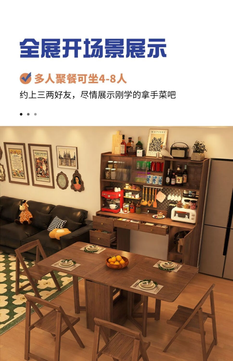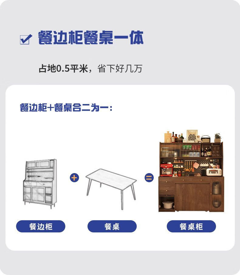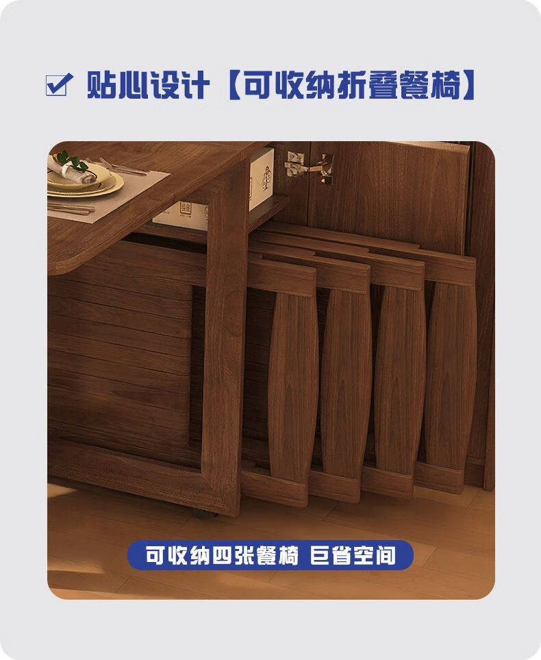 Qinkai all solid wood sideboard folding dining table integrated retractable folding mobile small apartment home table multi-function main picture