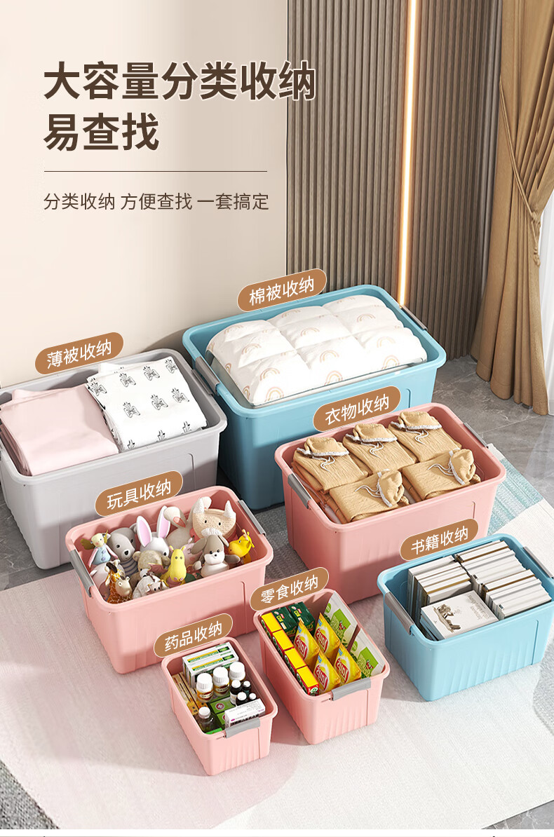 Plastic storage box household large capacity storage box multifunctional storage box large and small toy storage box blue single pack extra large length 43 width 31 height 23cm