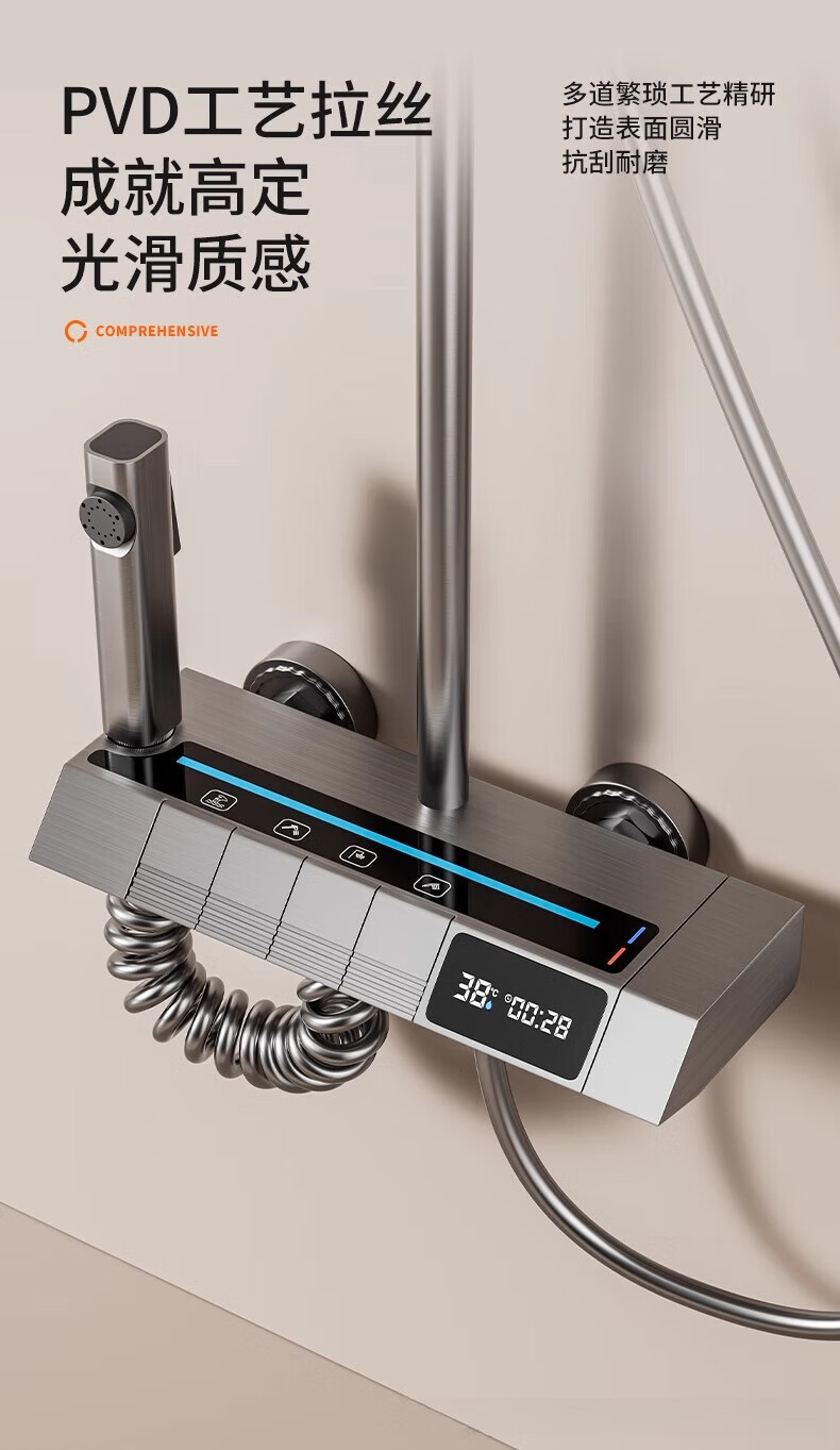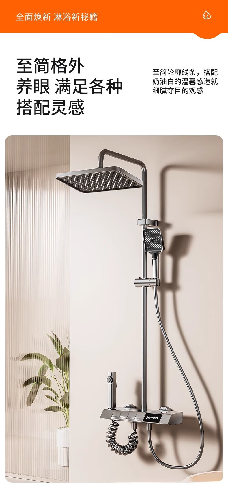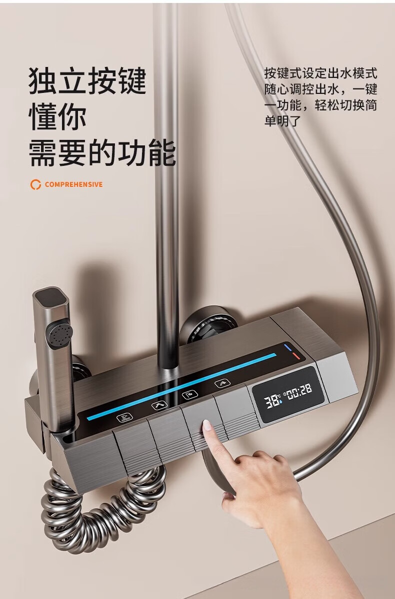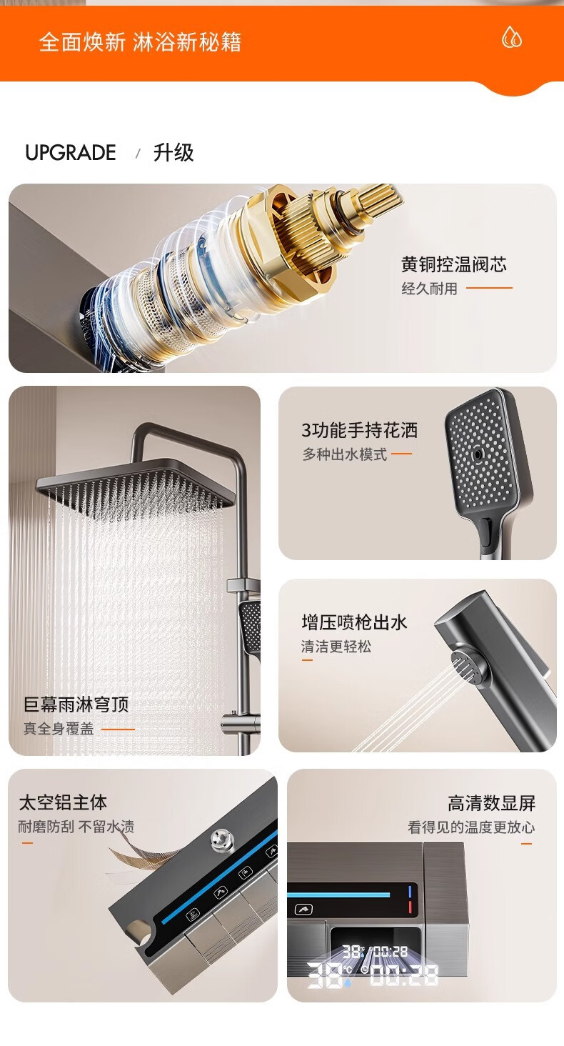 Xiaomi Guoba New Constant Temperature Shower Set Household Full Copper Bathroom Intelligent Bathroom Digital Display Atmosphere Light Shower Complete Set Black - Hot and Cold Aircraft Carrier Piano (Alloy)